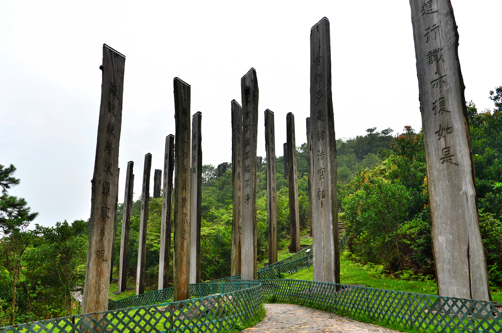 이곳에는 1m 간격으로 우뚝 솟은 나무 기둥 38개가 있는데, 이 기둥에 지혜의 말씀으로 불리는 '반야심경'이 적혀