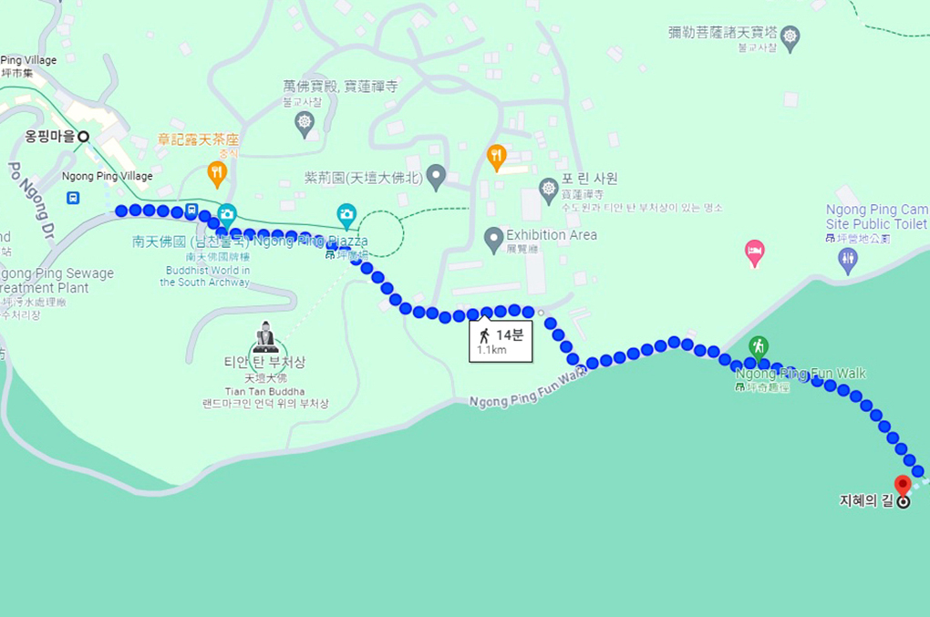 란터우 섬 포린사의 청동 좌불 '천단대불' 뒤쪽으로 나있는 작은 오솔길을 따라간다.