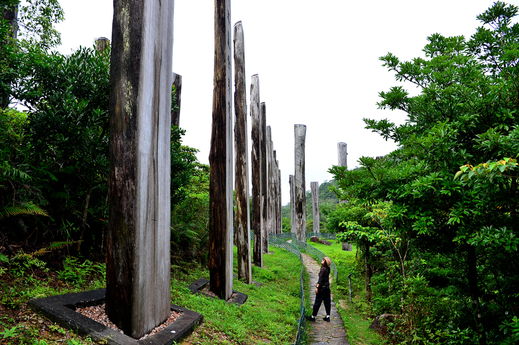 주변의 산과 어우러진 나무 기둥이 멋스럽게 다가온다.