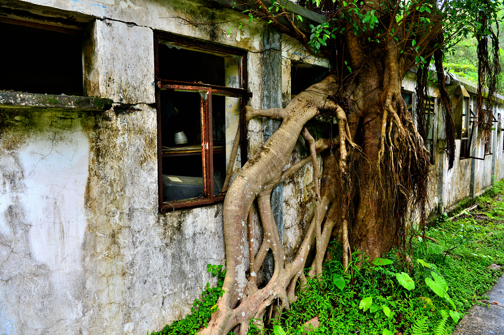 폐허로 버려진 세월이 꽤나 되었나 보다. 건물을 타고 오르는 나무뿌리를 보니~