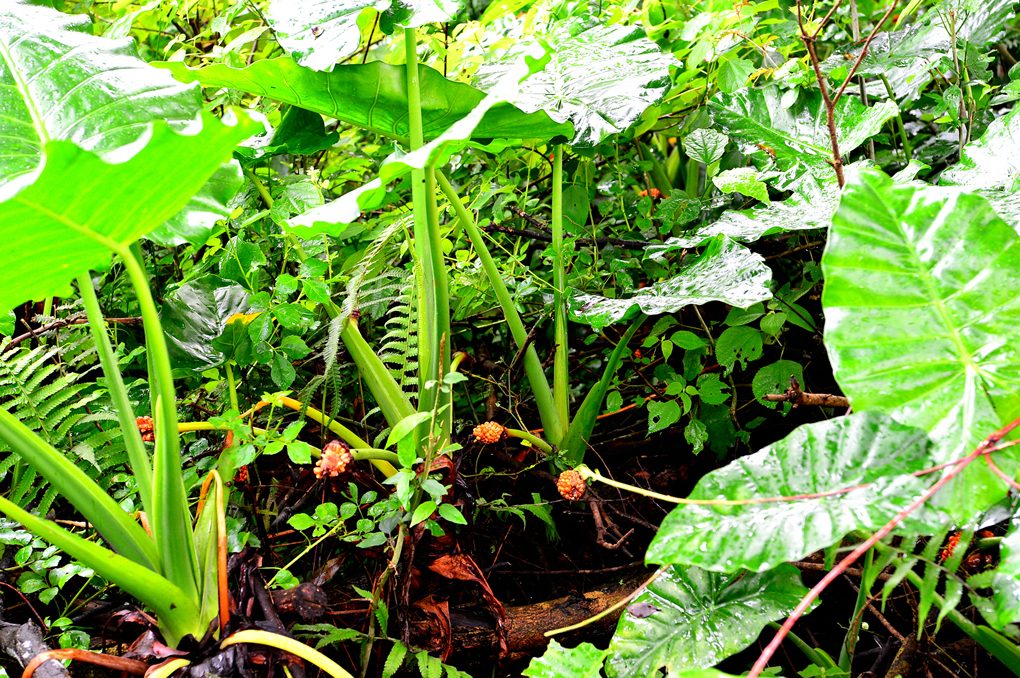 오솔길의 다양한 열대 식생들이 종종 가던 길을 멈추게 한다.