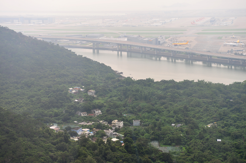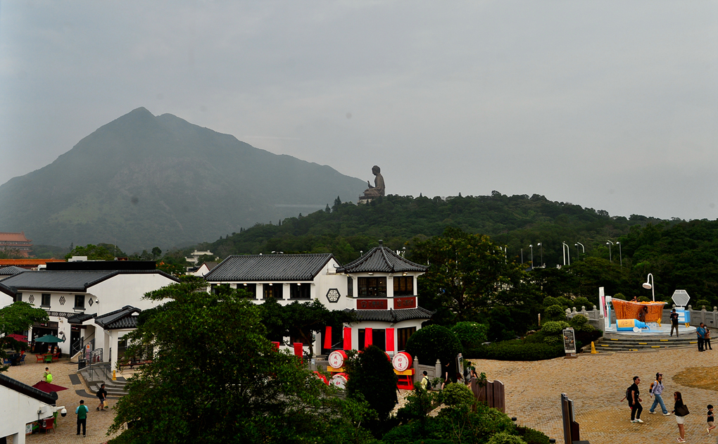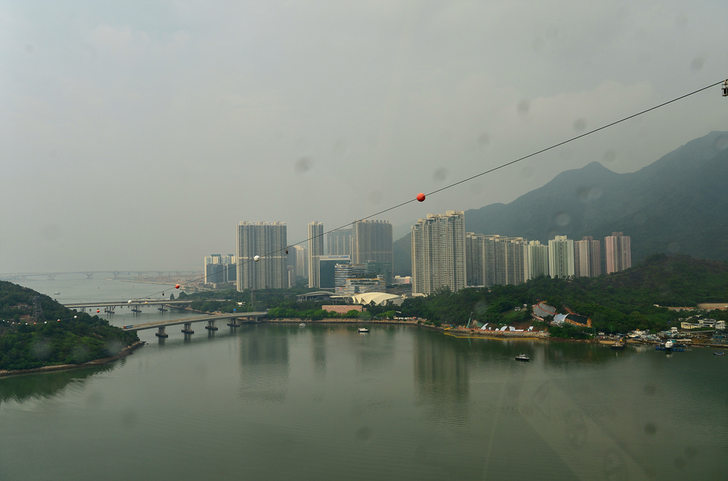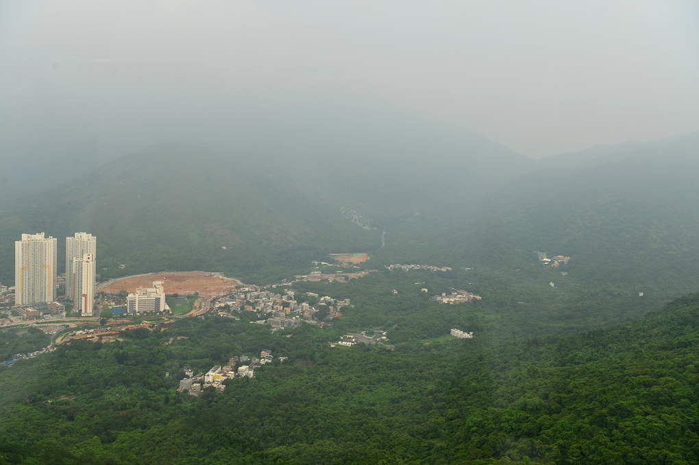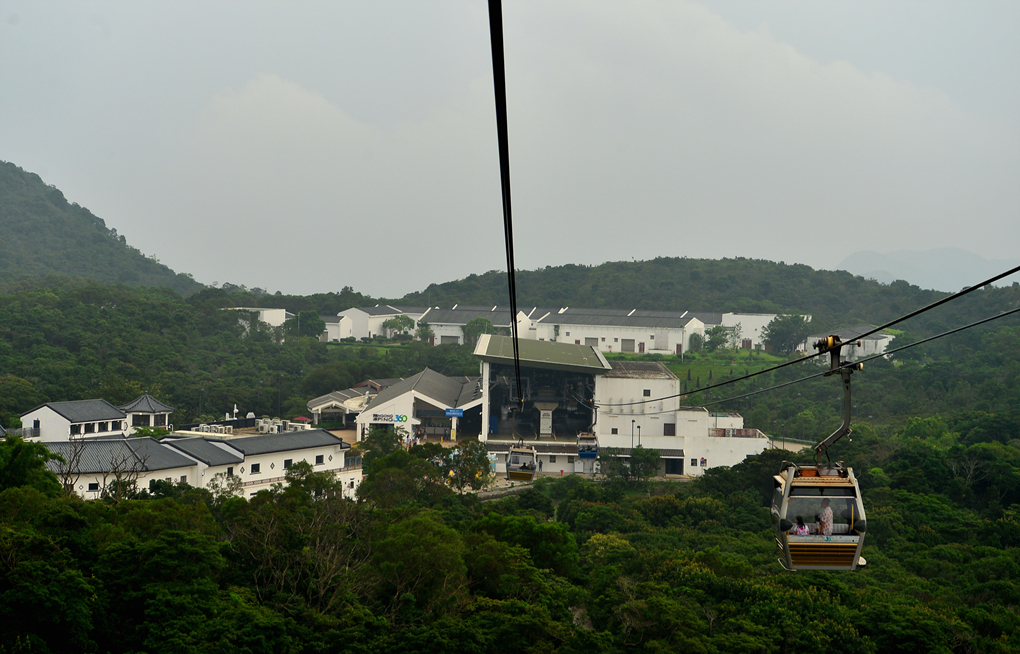 옹핑 마을을 나서는 케이블카에서 본 마을과 산 위의 천단대불 모습이다.