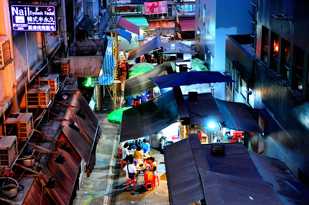 미드레벨 에스컬레이터에서 보이는 골목과 거리 풍경이다.