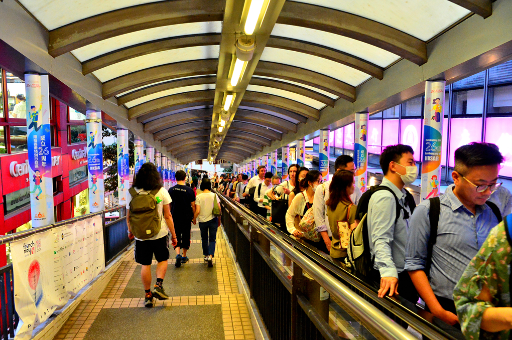센트럴 번화가 소호의 중추를 형성하고 있는 세계 최장 옥외 에스컬레이터라는 미드레벨 에스컬레이터 모습이다.