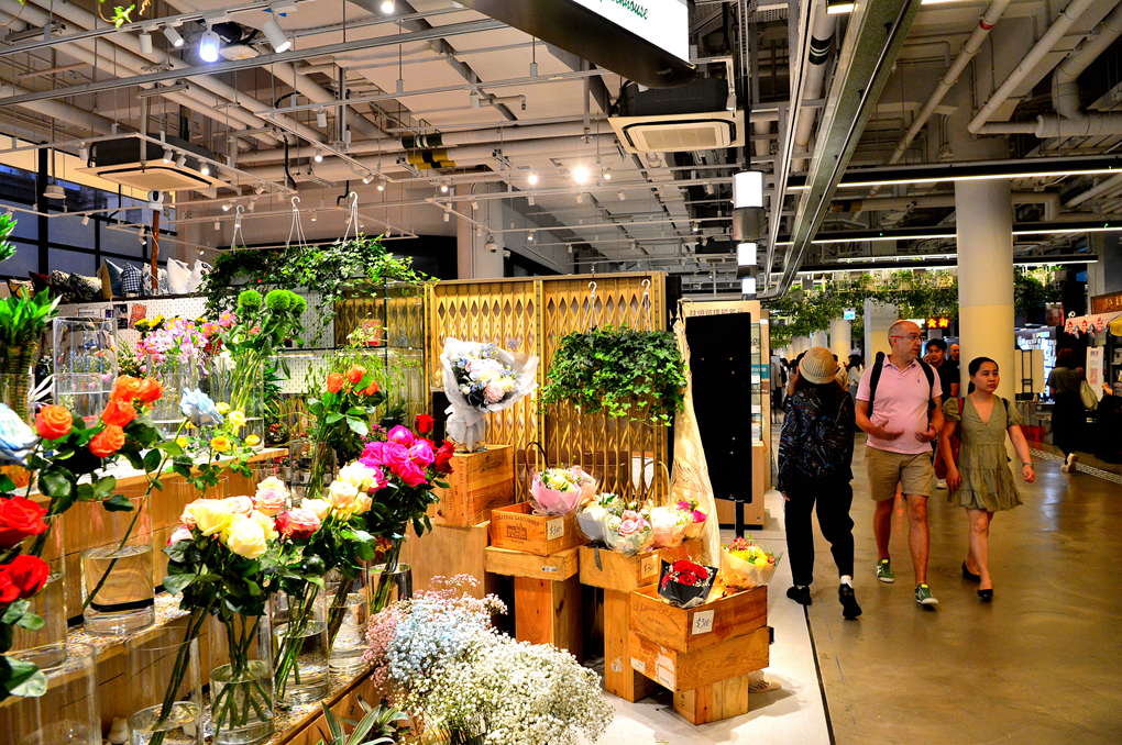 푸드 코트와 연결되어 있는 쇼핑몰 안도 보인다.