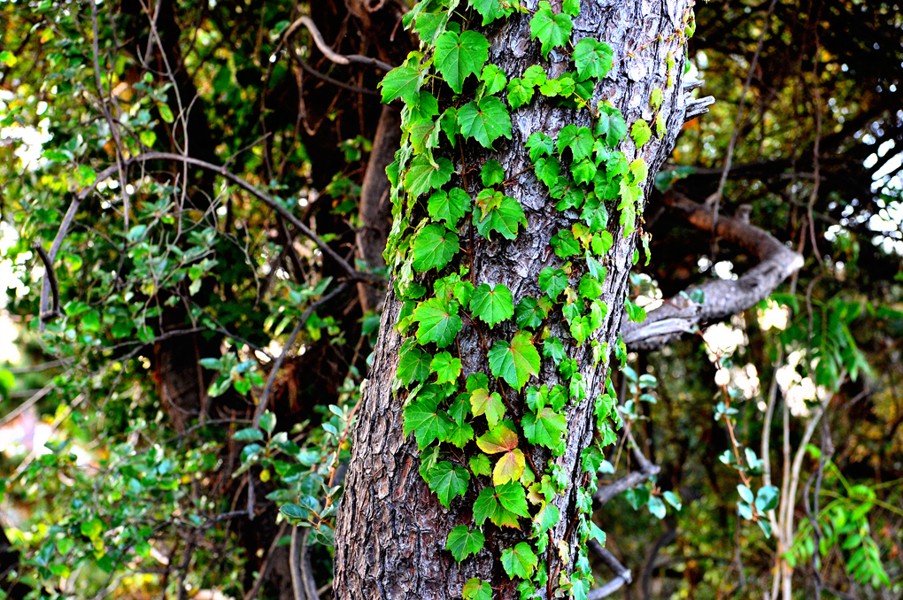 돌담 위를 기어가고 있는 앙증맞은 담쟁이 모습이 귀엽다.