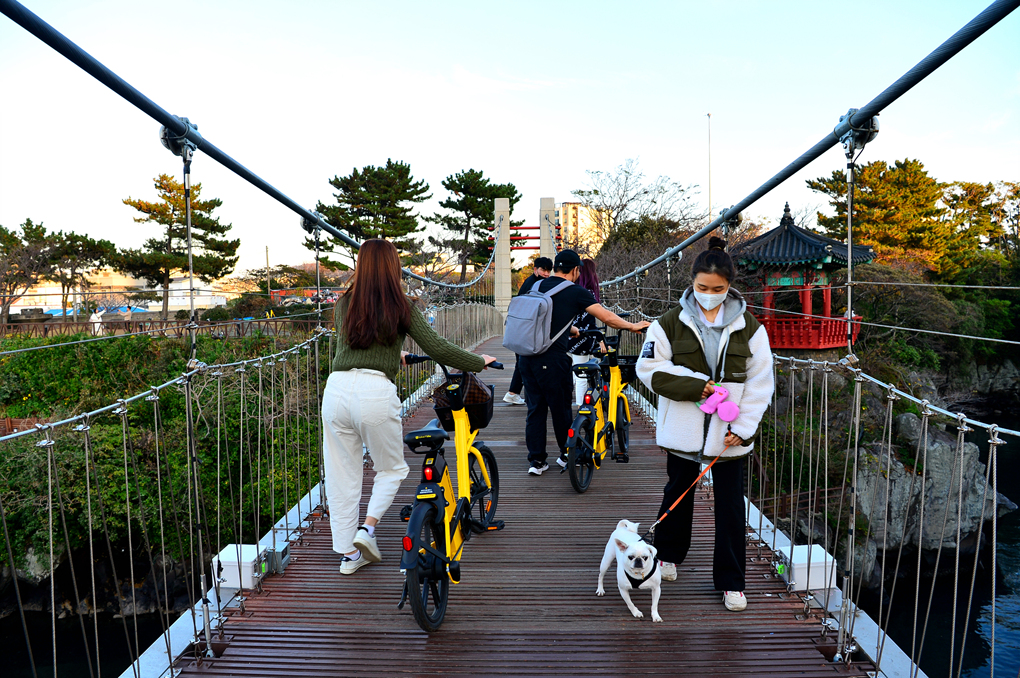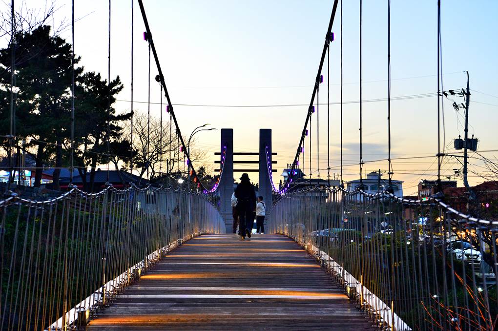 아름다운 풍경에 이끌려 많은 사람들이 오가는 다리인가 보다.