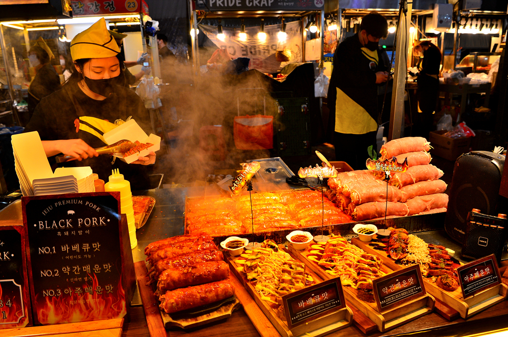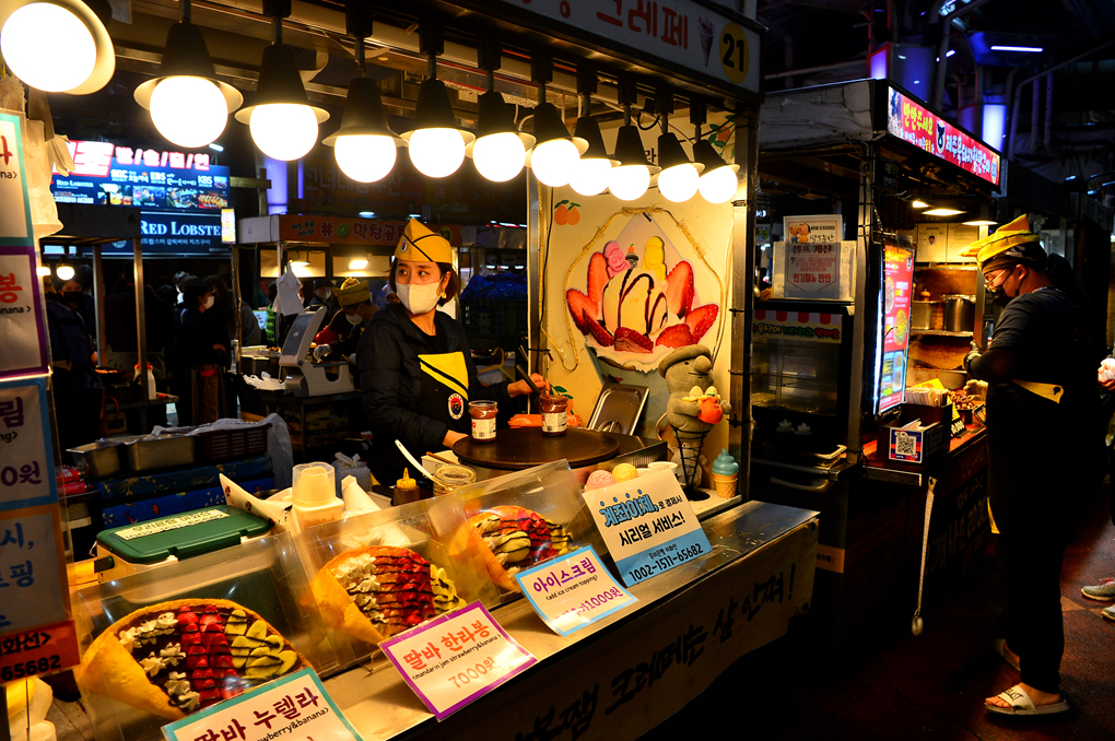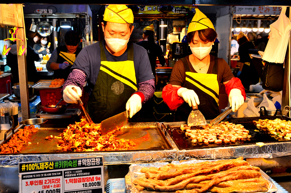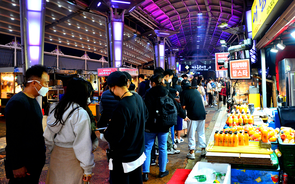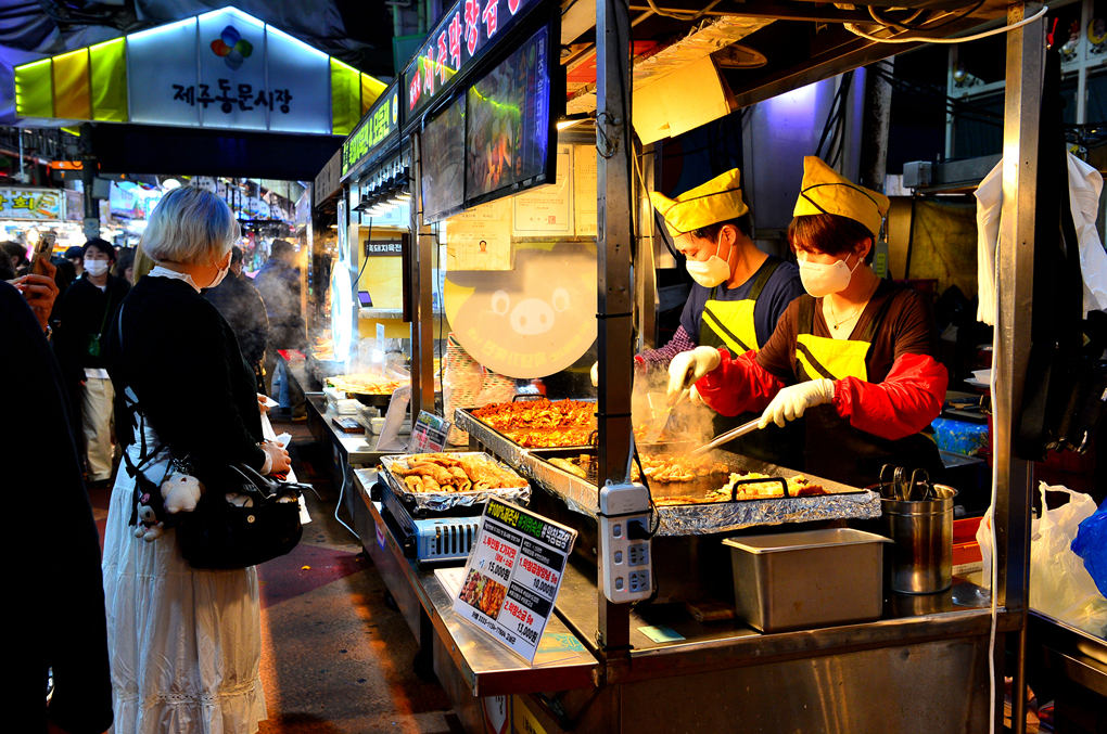현지인에게 밤에 가볼 만한 곳을 여쭈니 제주 동문시장을 가보라고 하신다.