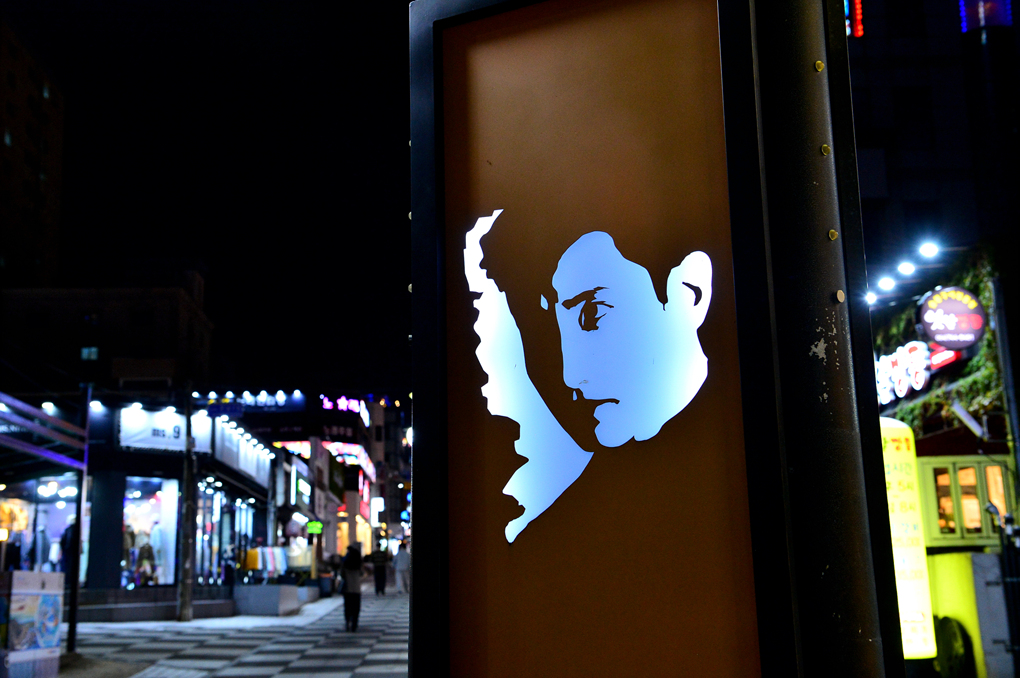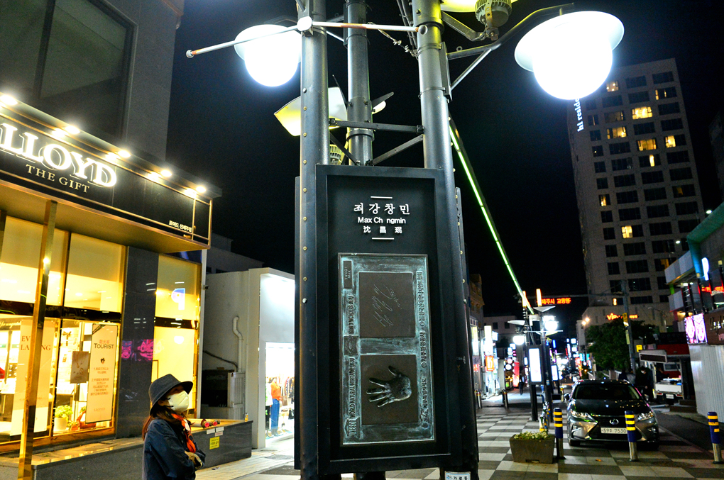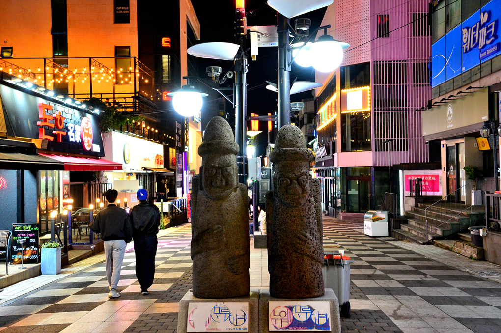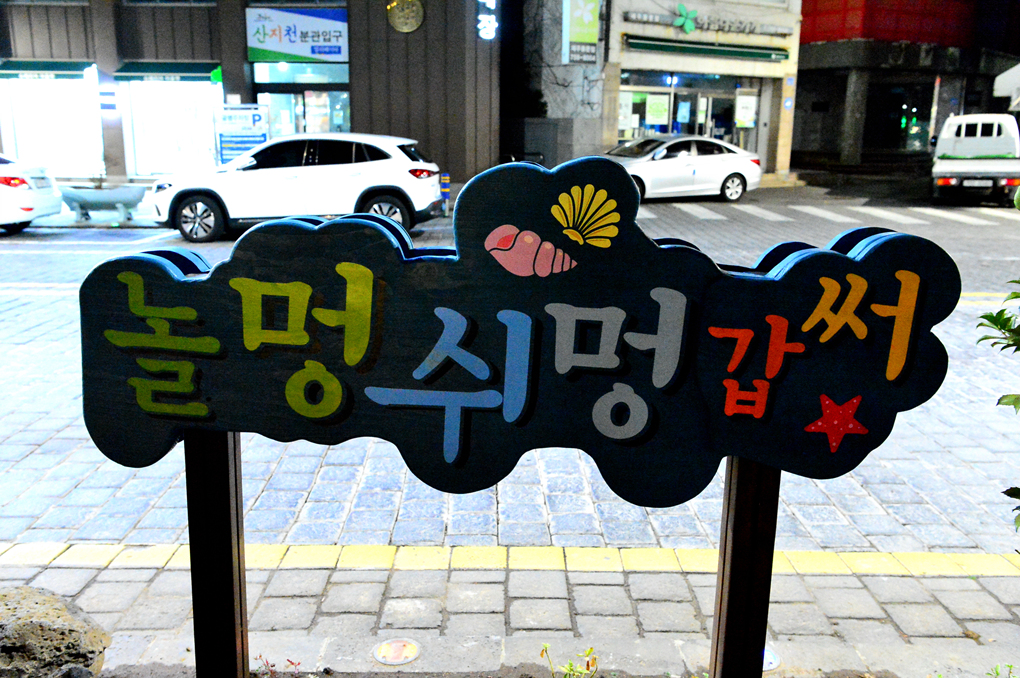 우리가 체크인한 호텔 정면으로 제주 문화의 거리라는 누웨마루 거리 표지판이 세워져 있다.