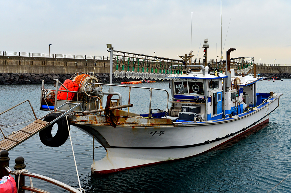 방파제 안의 어선이 한적하고 여유로운 풍경을 자아내고 있다.