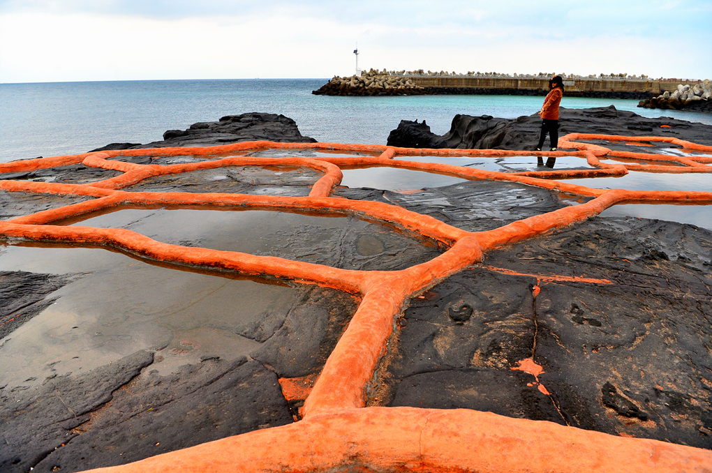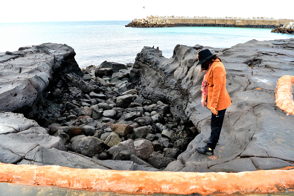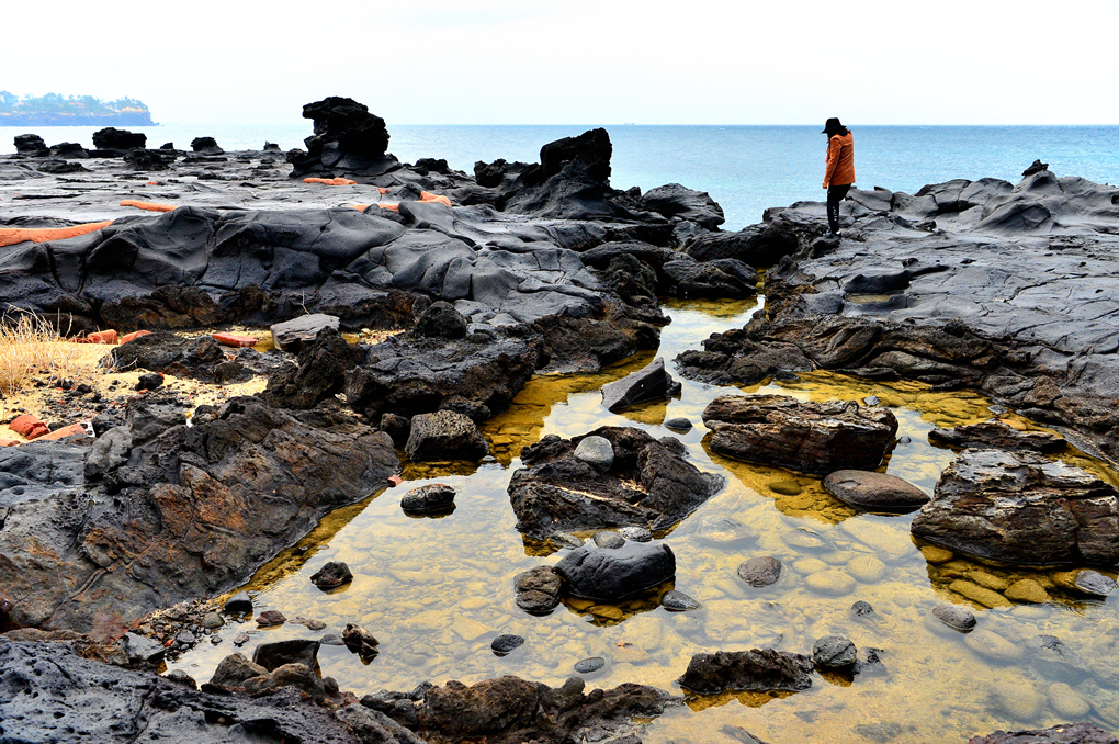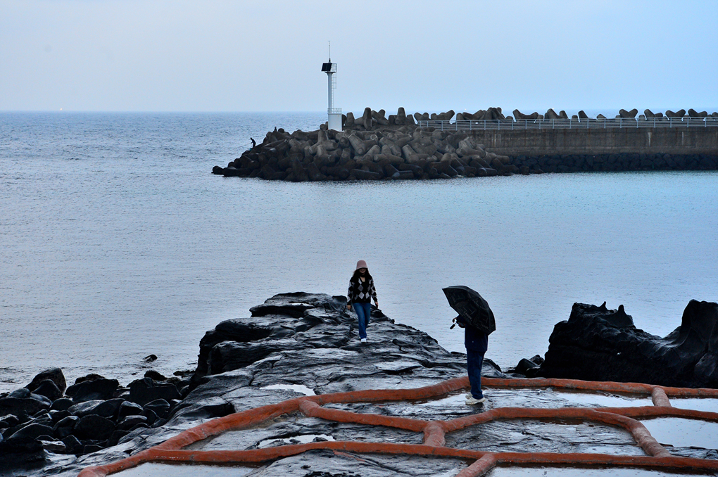 돌염전 바깥은 현무암으로 이루어진 암석들이 드넓은 바다와 마주하고 있다.