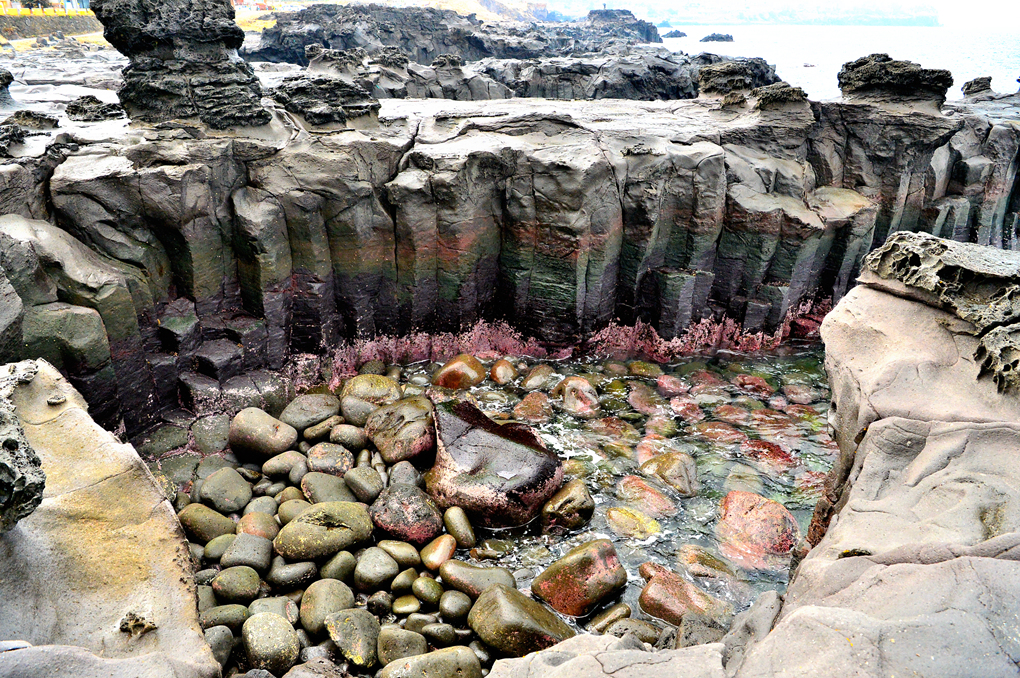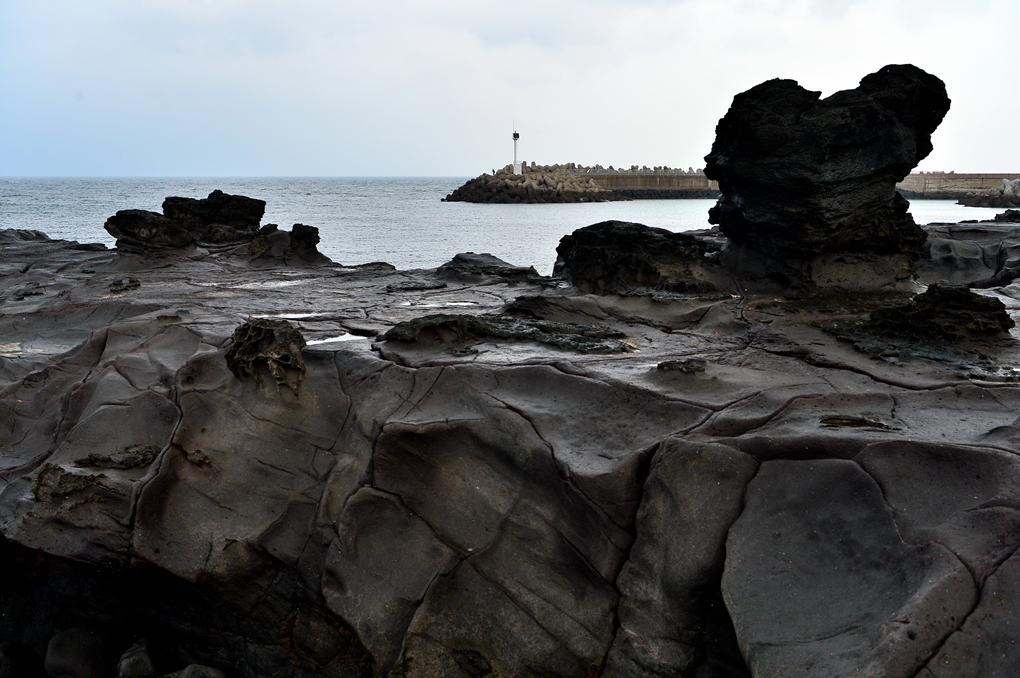 파도에 단련된 바위 윗면은 매끈하게 잘 다듬어진 형상을 하고 있다.