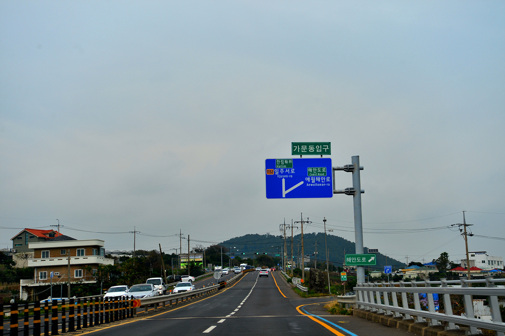 제주 서부 일주도로에서 애월 해안도로로의 이정표가 보인다.