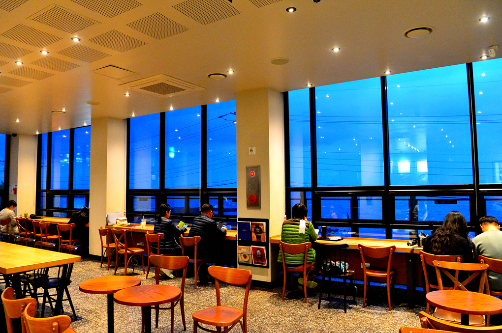 바다가 훤히 내려다보이는 창가에서 잠시 휴식을 취한다.