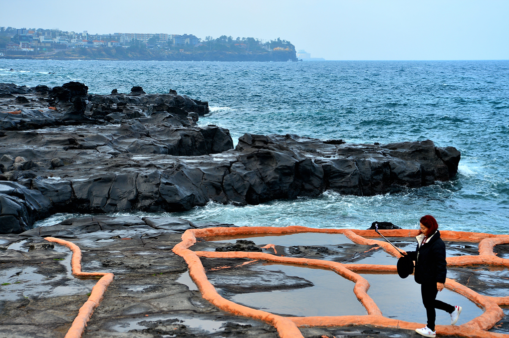 현무암으로 이루어진 천연 암반지대에서 소금을 생산했다는 이 구엄리 돌염전은, 조선시대부터 구엄마을의