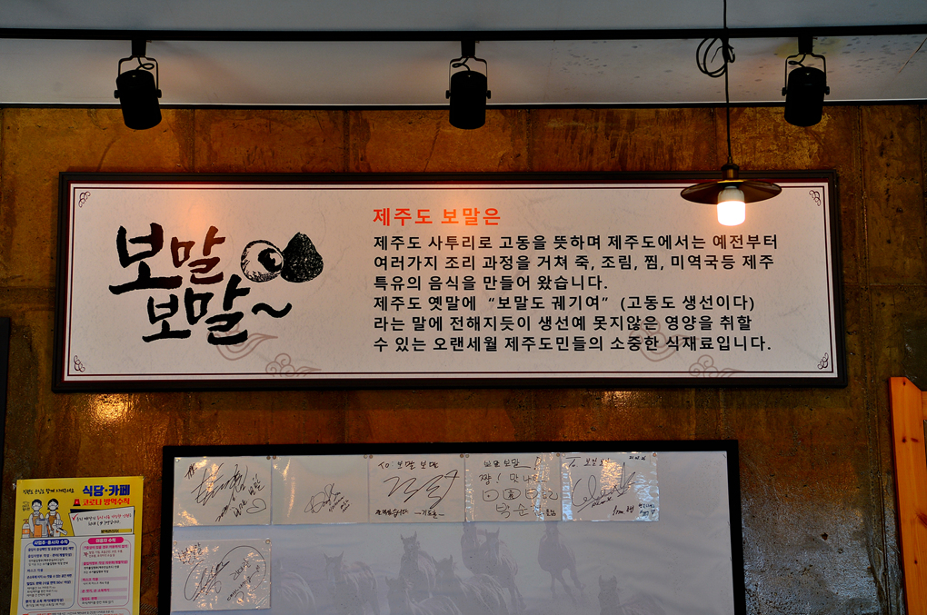 다양한 보말 요리가 적혀 있다.
