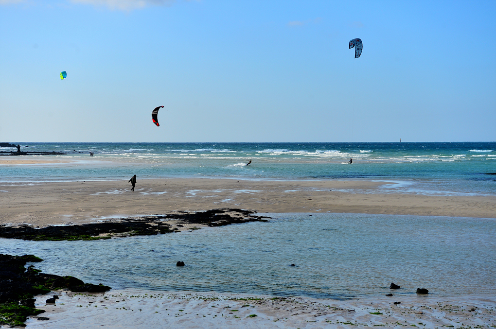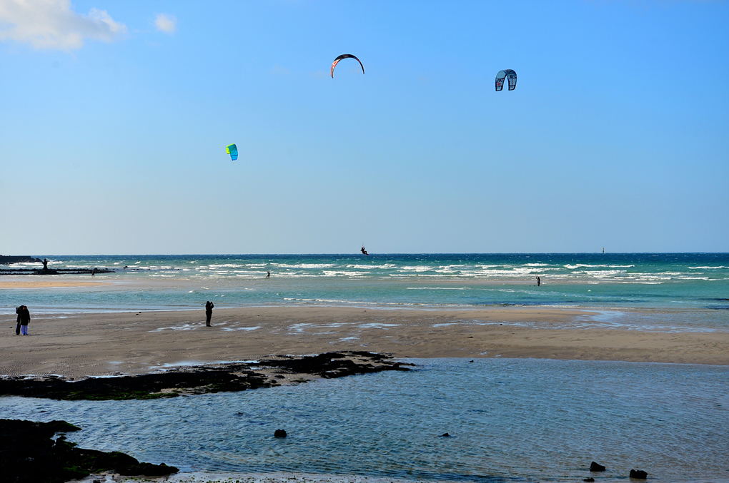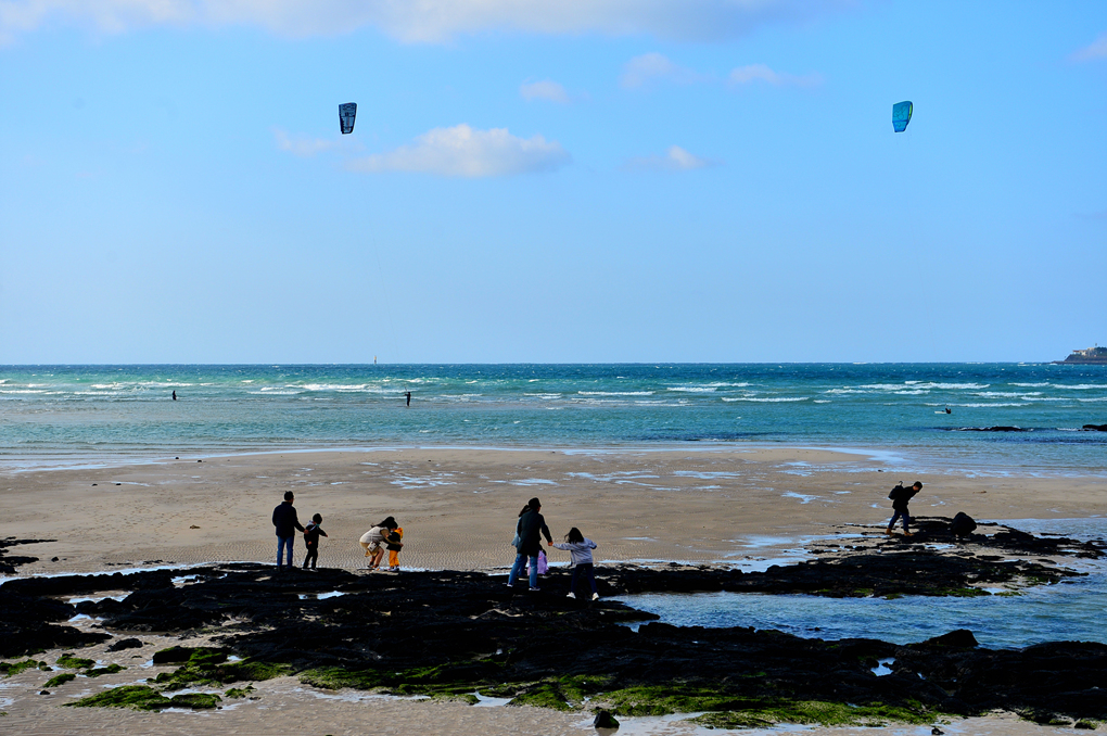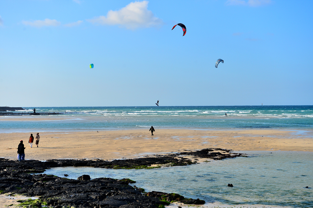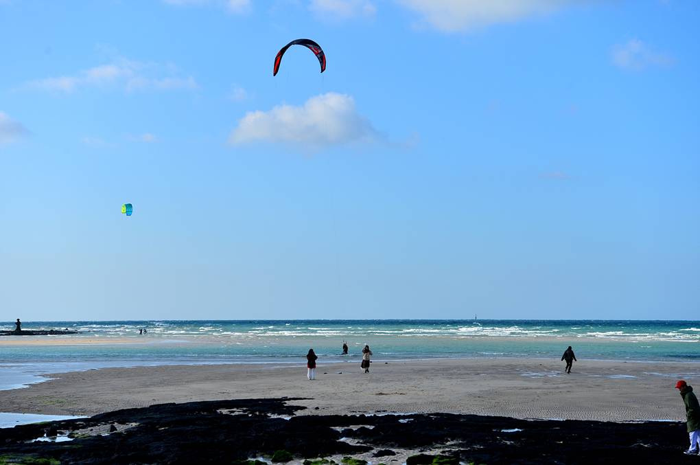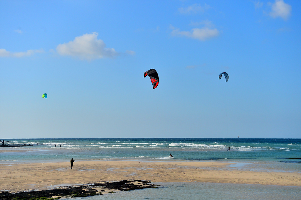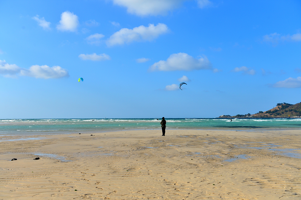 잠시 카이트 보더들의 멋진 서핑을 즐겨 본다.
