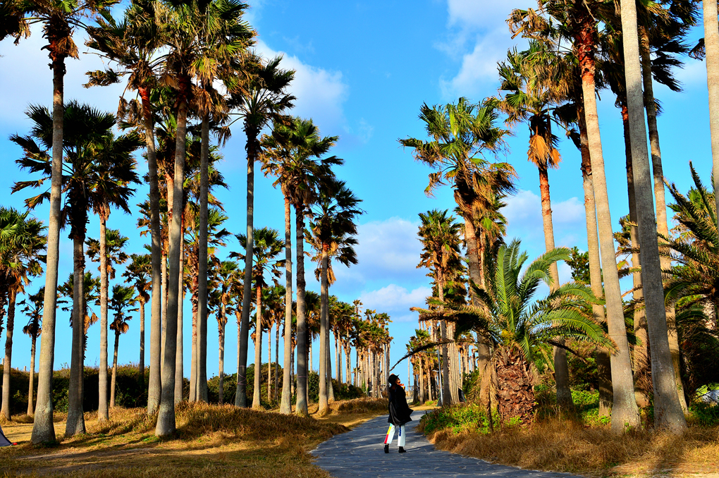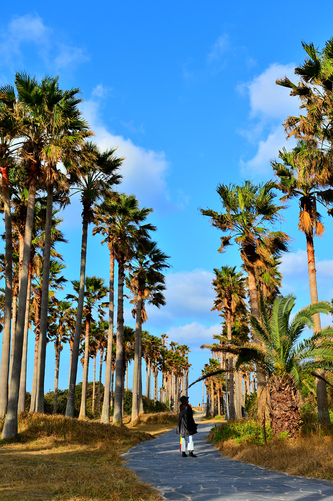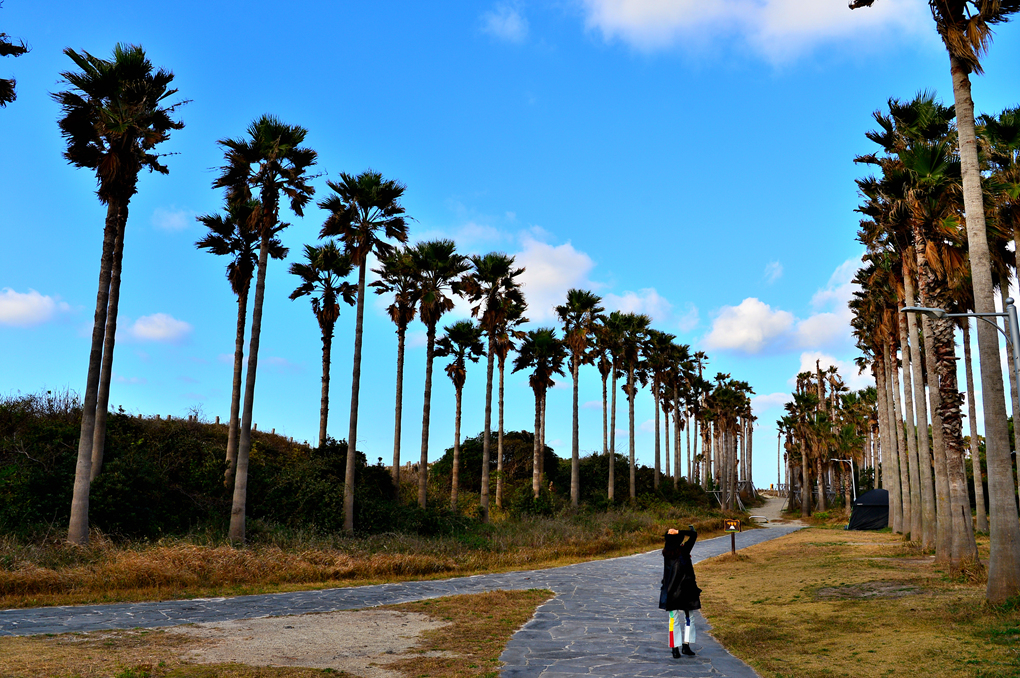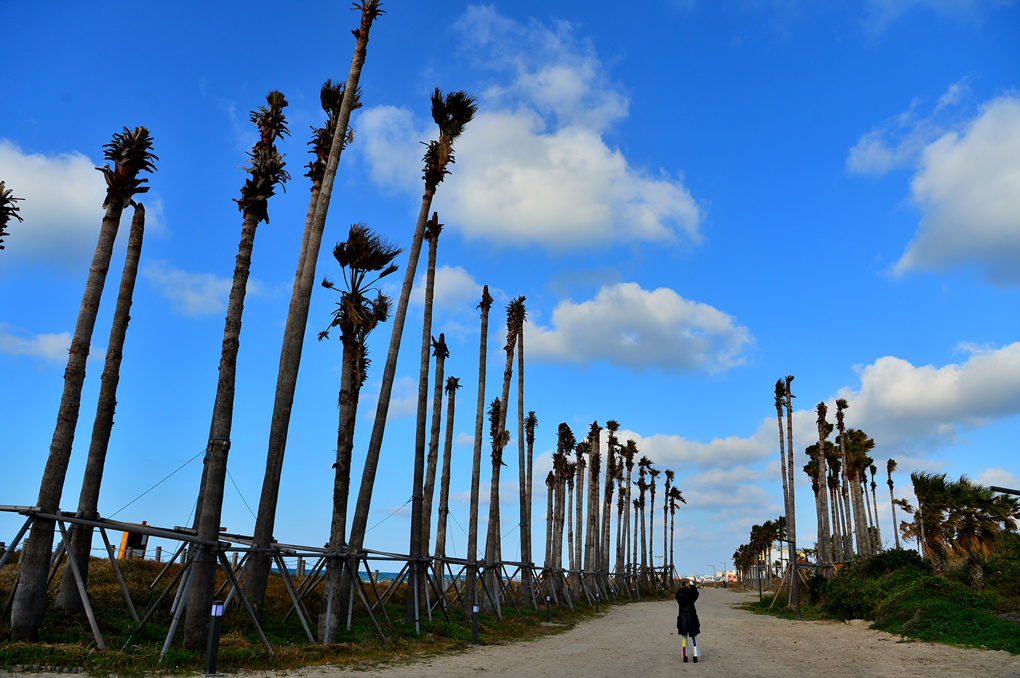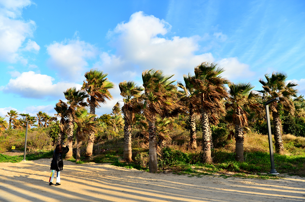 백사장에서 올려다본 야자수길 풍광이 아름답기만 하다.