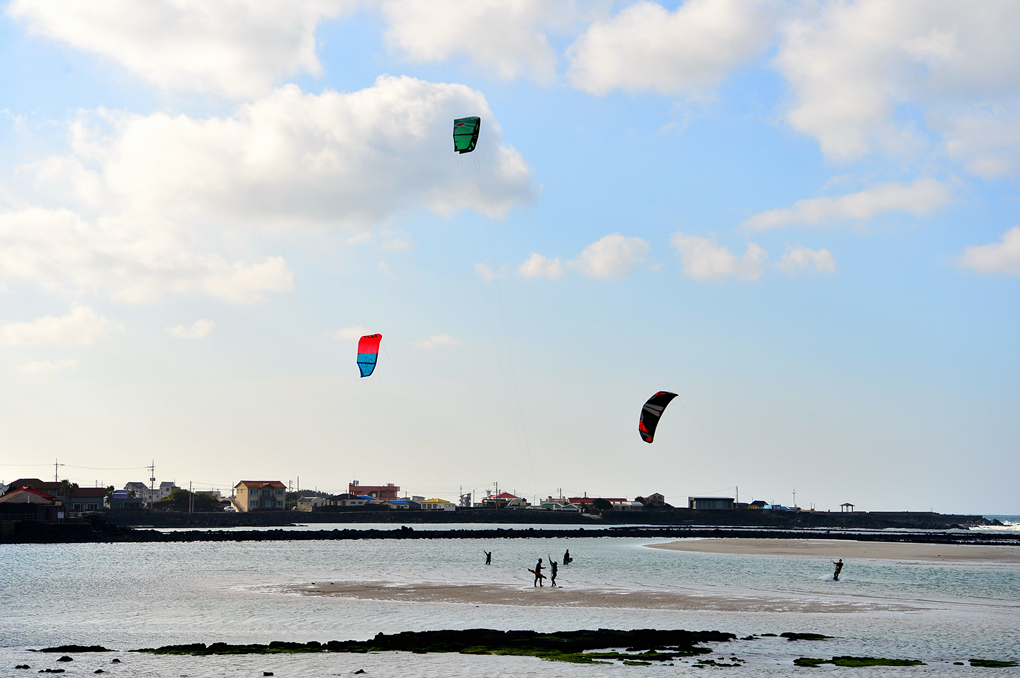 누가 누가 더 멋지게 카이트 보드를 즐기나~?
