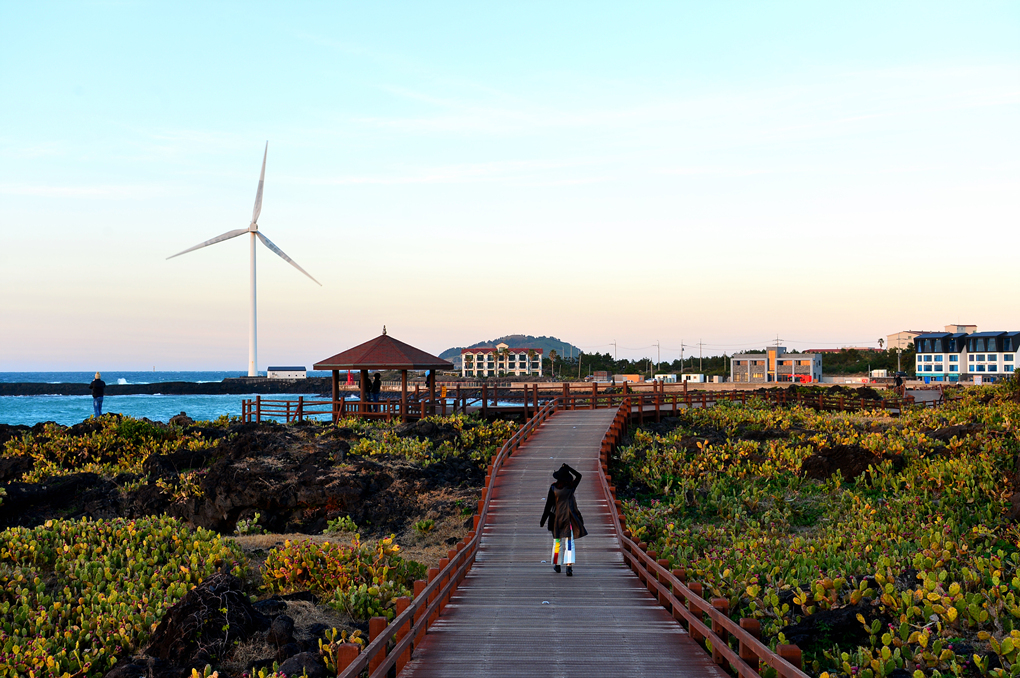 월령 마을의 선인장 군락지 사이를 통과하는 잘 만들어진 산책로다.