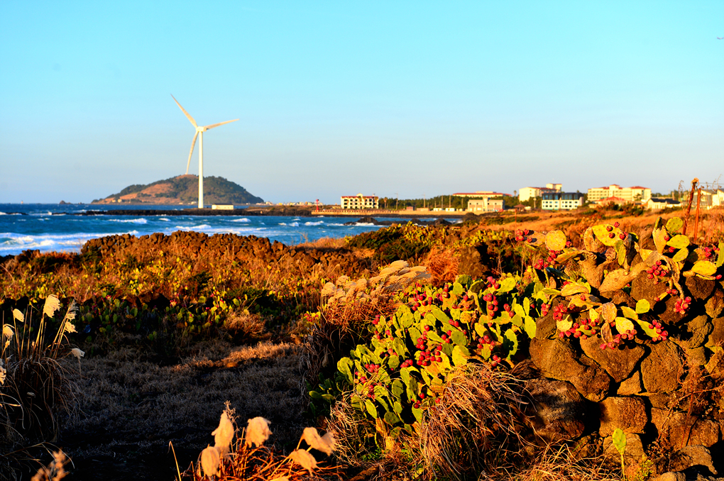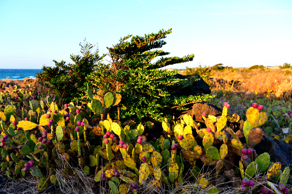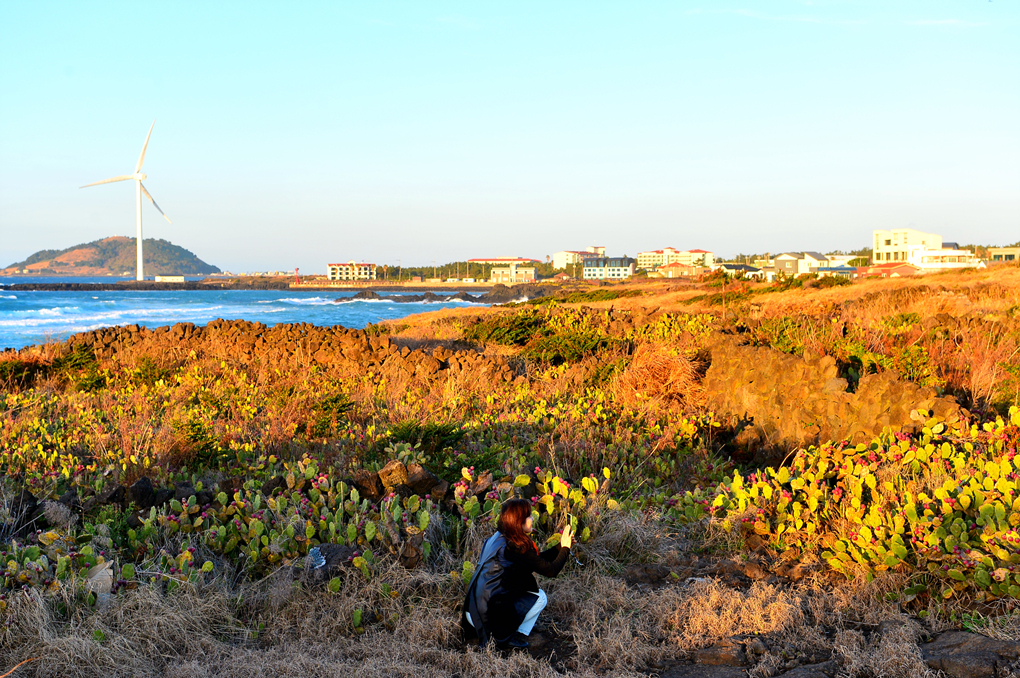 해안가를 따라 펼쳐져 있는 국내 유일의 선인장 군락지라는 월령 선인장 군락지의 풍경이다.