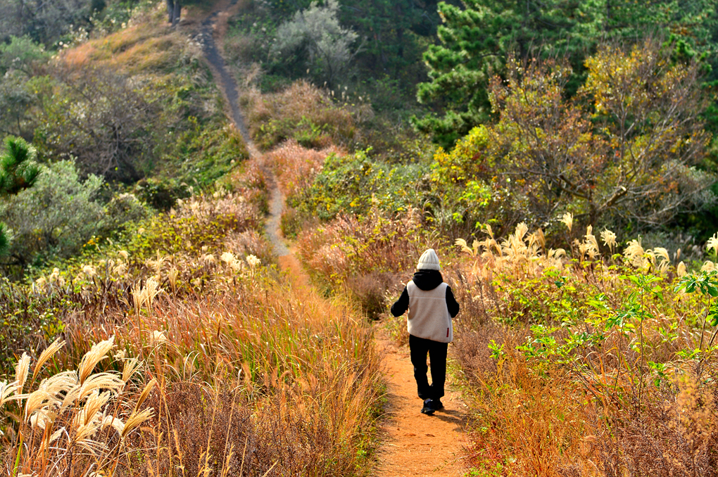 탐방로 옆의 아름다운 억새밭 풍경이다.