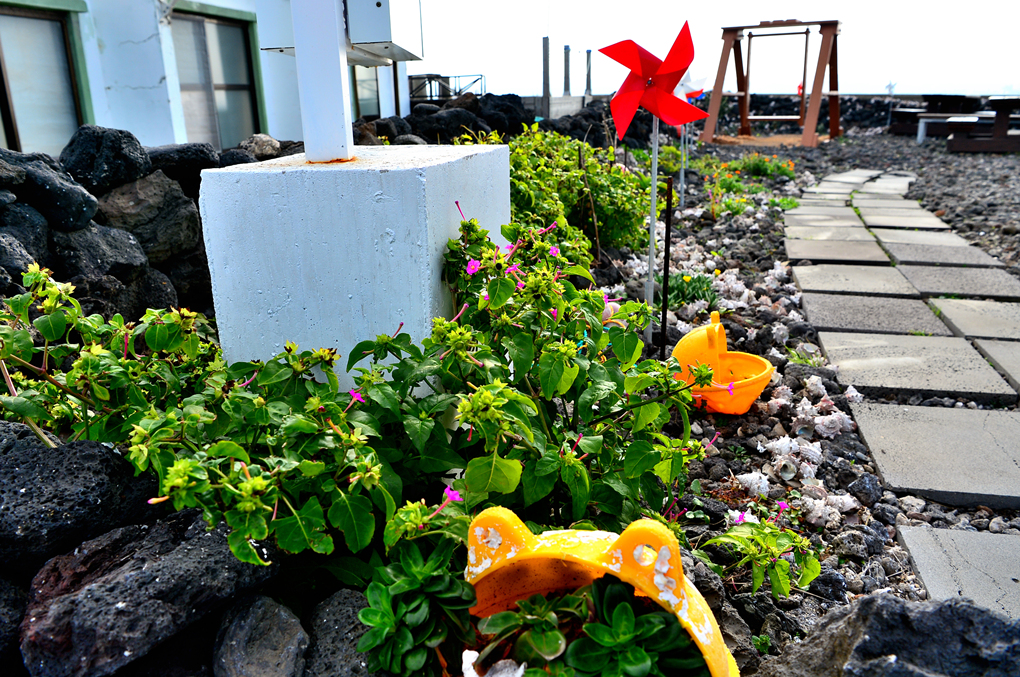 건물 주변의 수많은 소라 껍데기들이 금방이라도 파도 소리를 들려줄 듯싶다.
