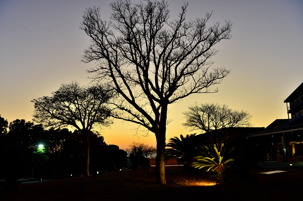 호텔 정원에도 불이 밝혀지기 시작한다.