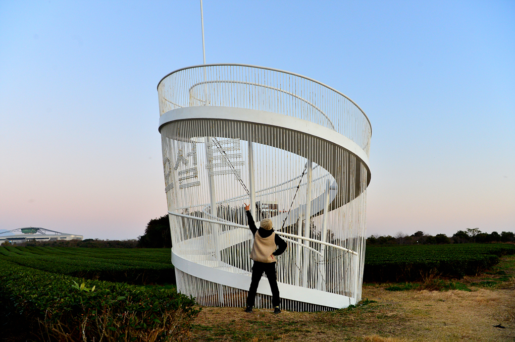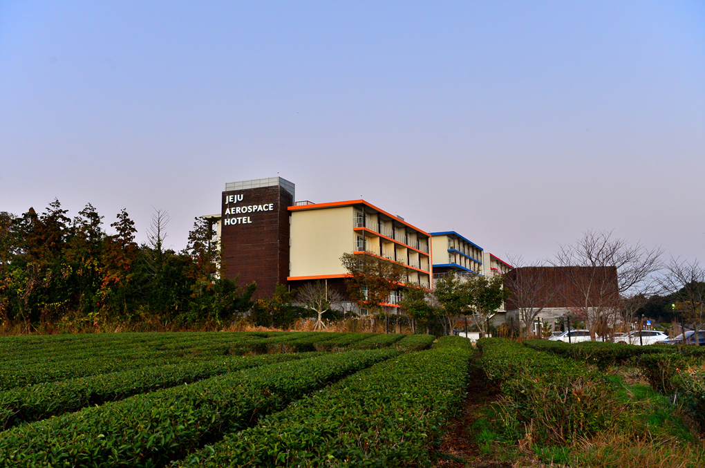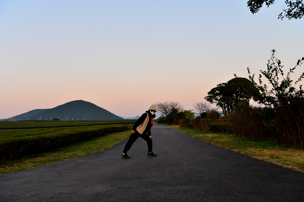 제주 여행의 하루를 마무리하는 호텔 주변 오설록 차밭에서의 산책 모습이다.