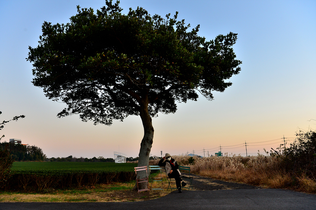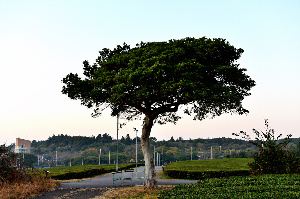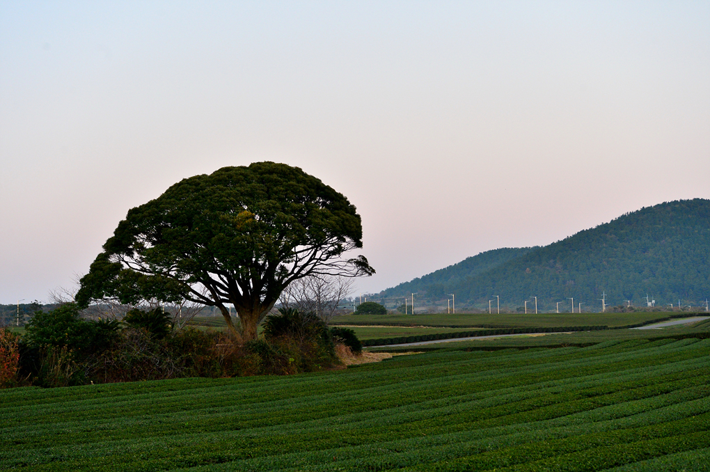 차밭 모퉁이의 홀로 소나무도 멋진 풍경을 제공해 주고 있다.