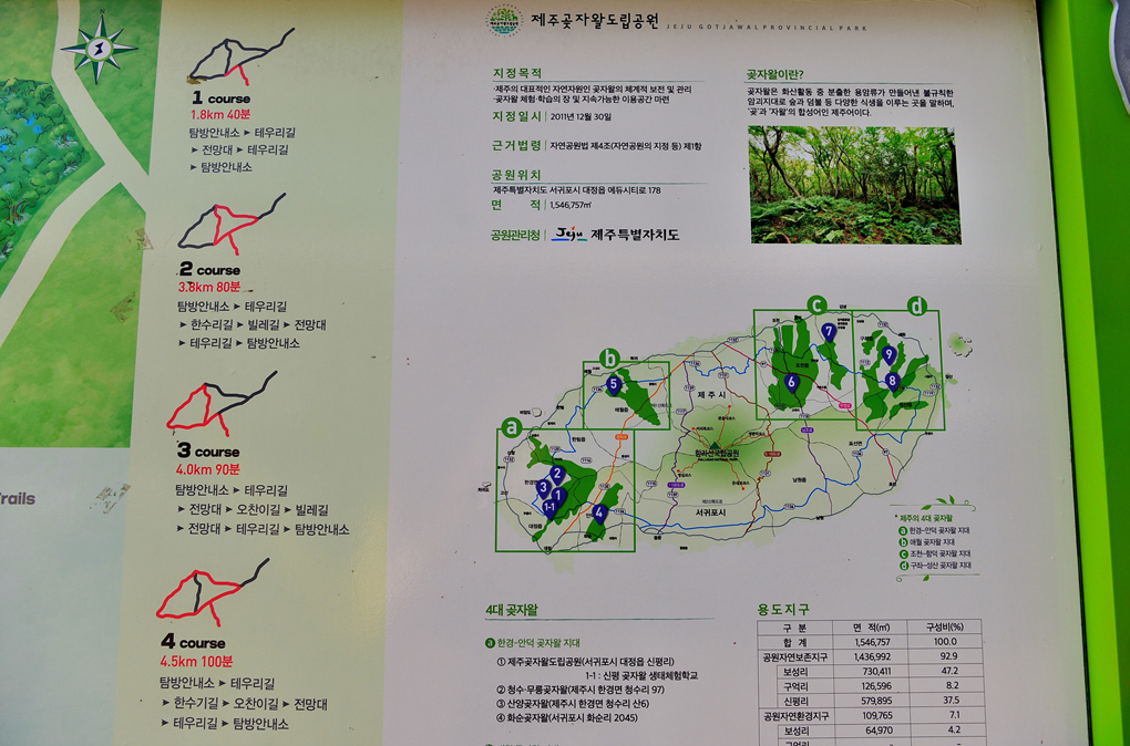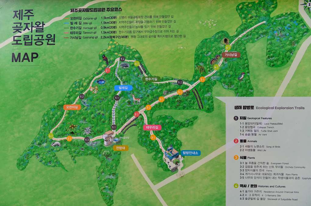 곶자왈의 주요 코스를 상세하게 알려주고 있다.