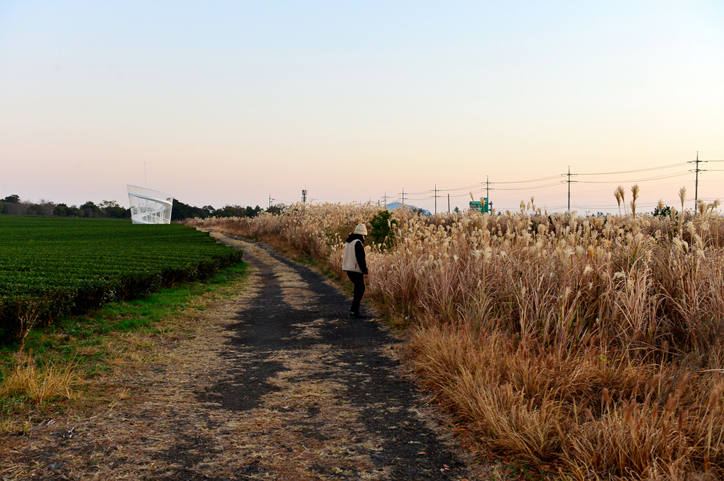 차밭과 도로 사이의 공터에는 억새밭이 펼쳐져 있다.