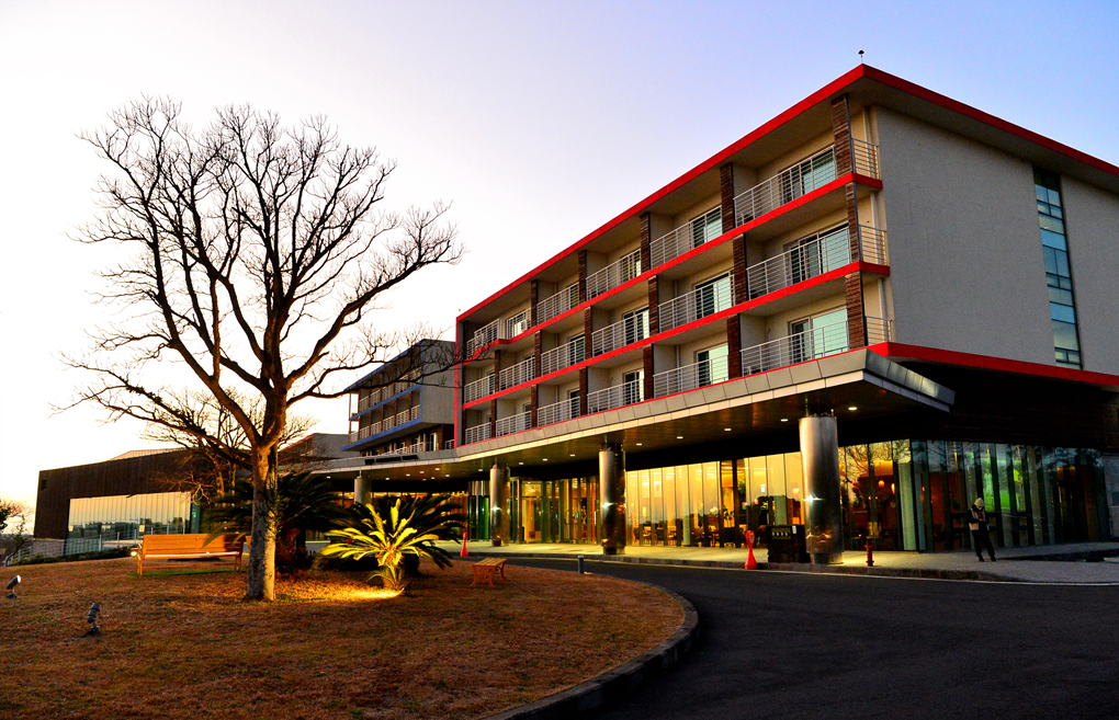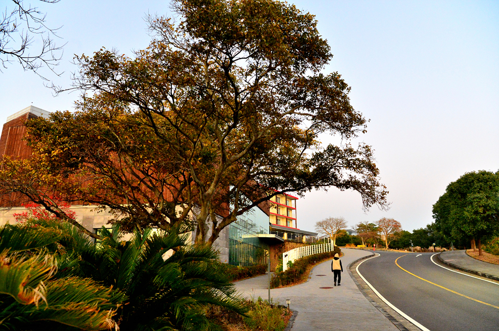 호텔 주변 차밭 산책을 마치고 호텔로 돌아가는 중이다.