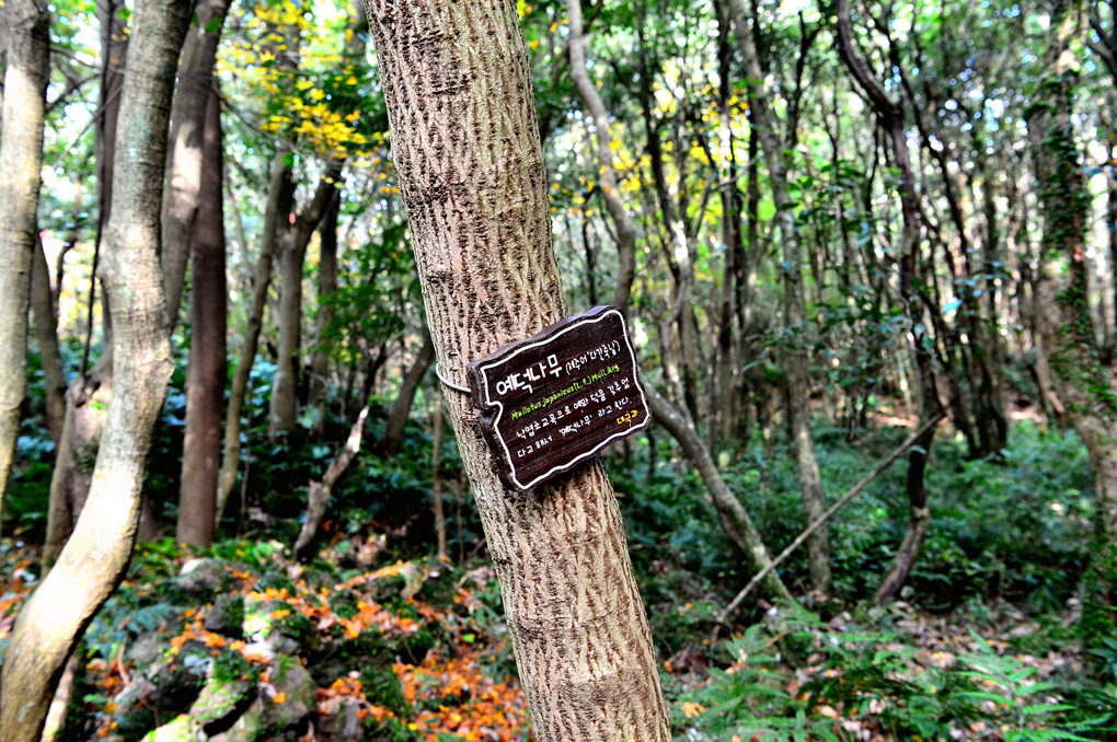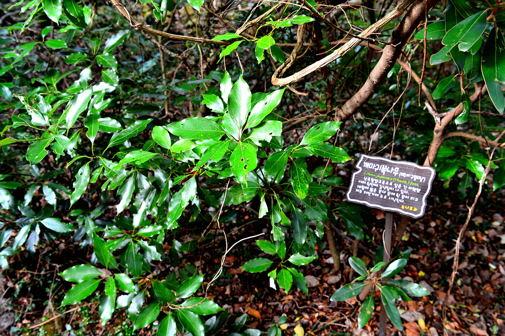 난대림이나 계곡에서 주로 자라는 종가시 나무라는 설명이 붙어 있다.
