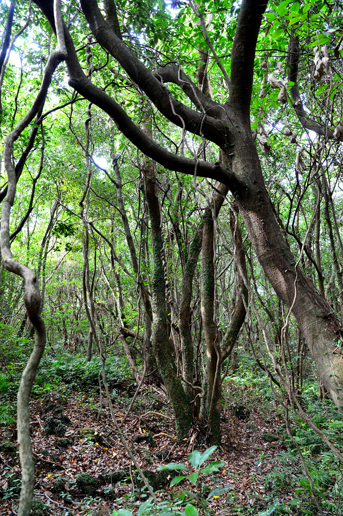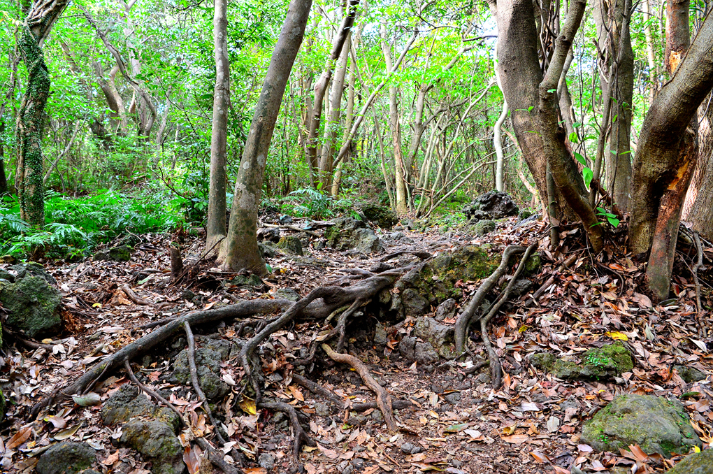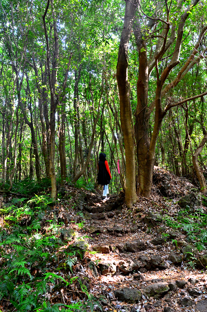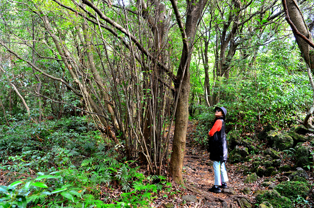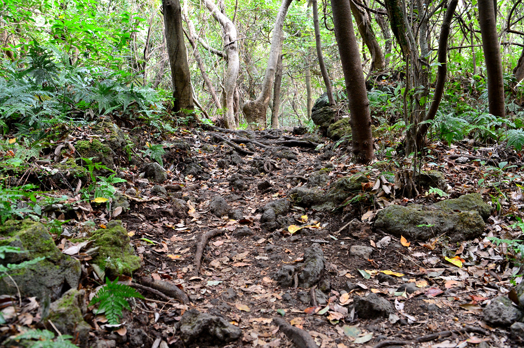 화산석과 나무뿌리가 뒤엉켜 울퉁불퉁해서 발걸음을 조심스럽게 옮겨 간다.