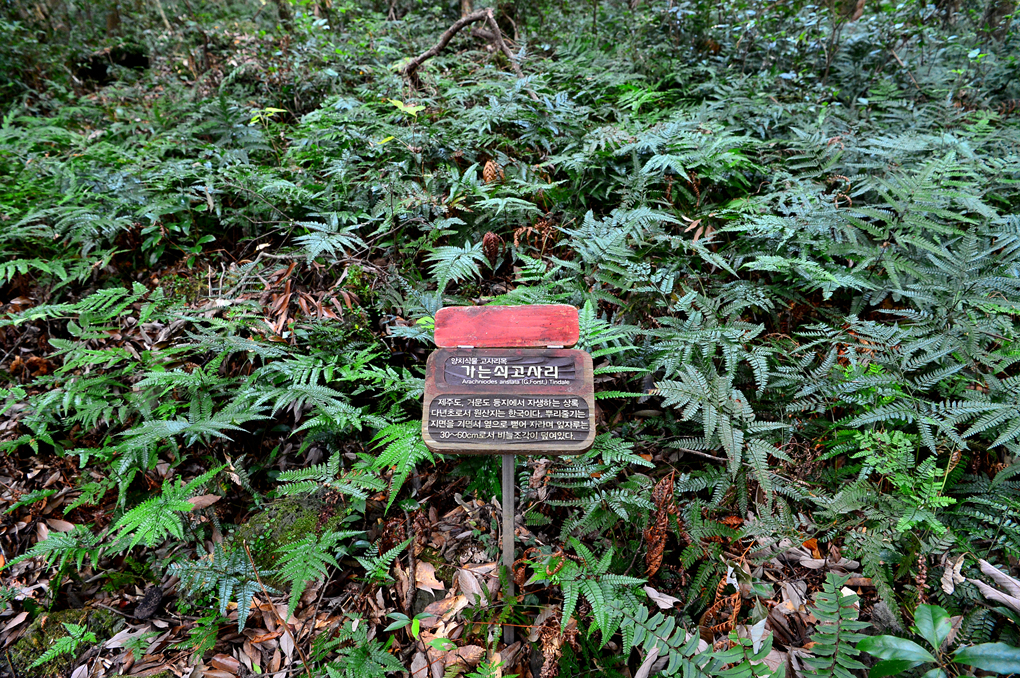 산책로 주변이 지천으로 널려 있는 이 양치식물은 가는쇠고사리라는 고사리목으로, 제주도, 거문도 등지에서 자생