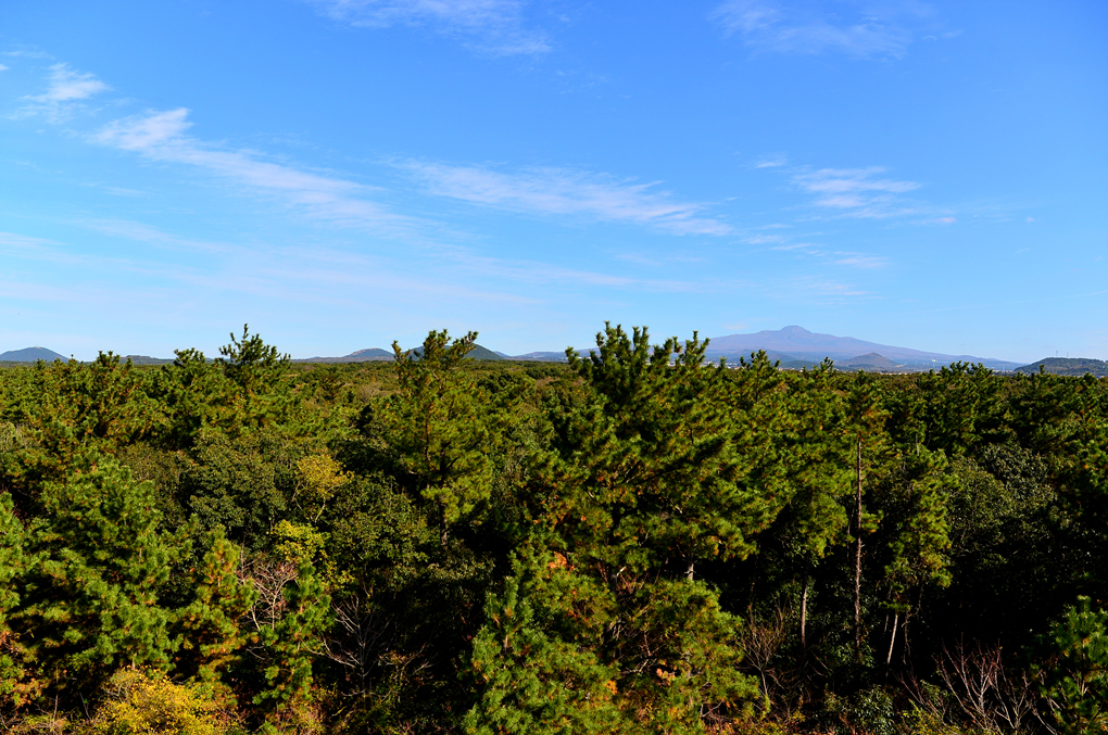 오름들 뒤의 한라산까지~