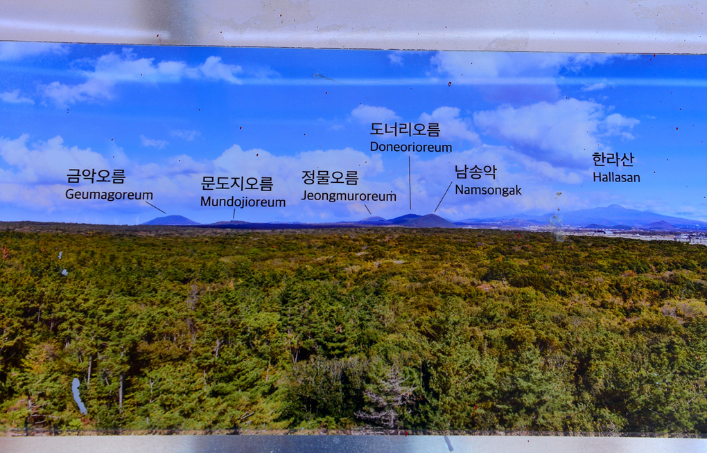 전망대 제일 높은 곳에 오르니, 이곳에서 보이는 오름들의 명칭을 자세히 적어 놓았다.