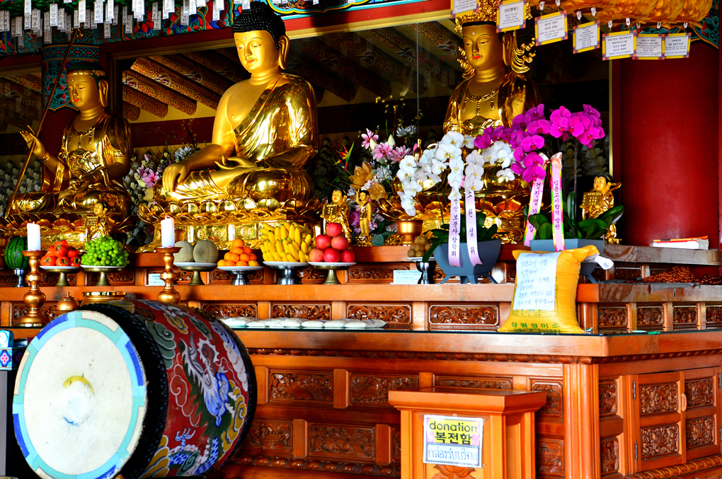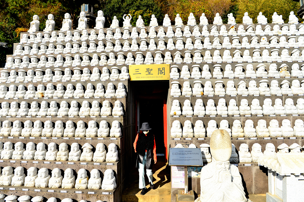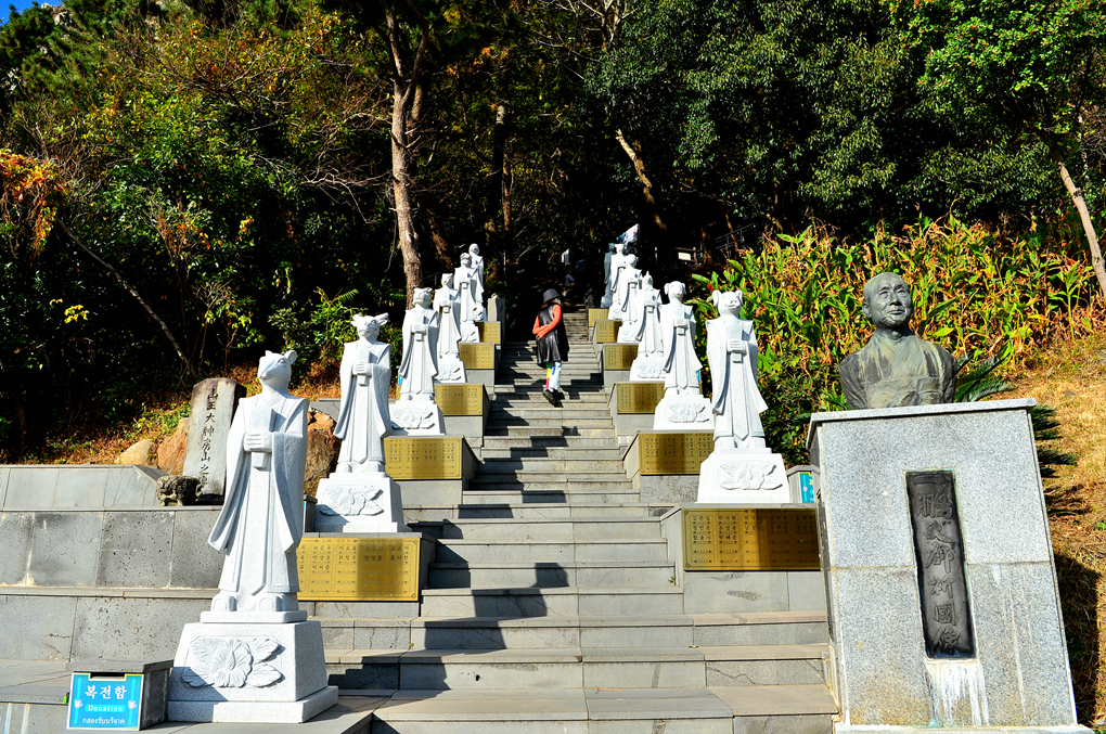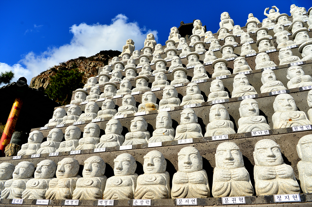 돌하르방 모양의 불상들이 수없이 늘어서 있고, 그 아래의 이름들은 보시자들의 성명인 모양이다.