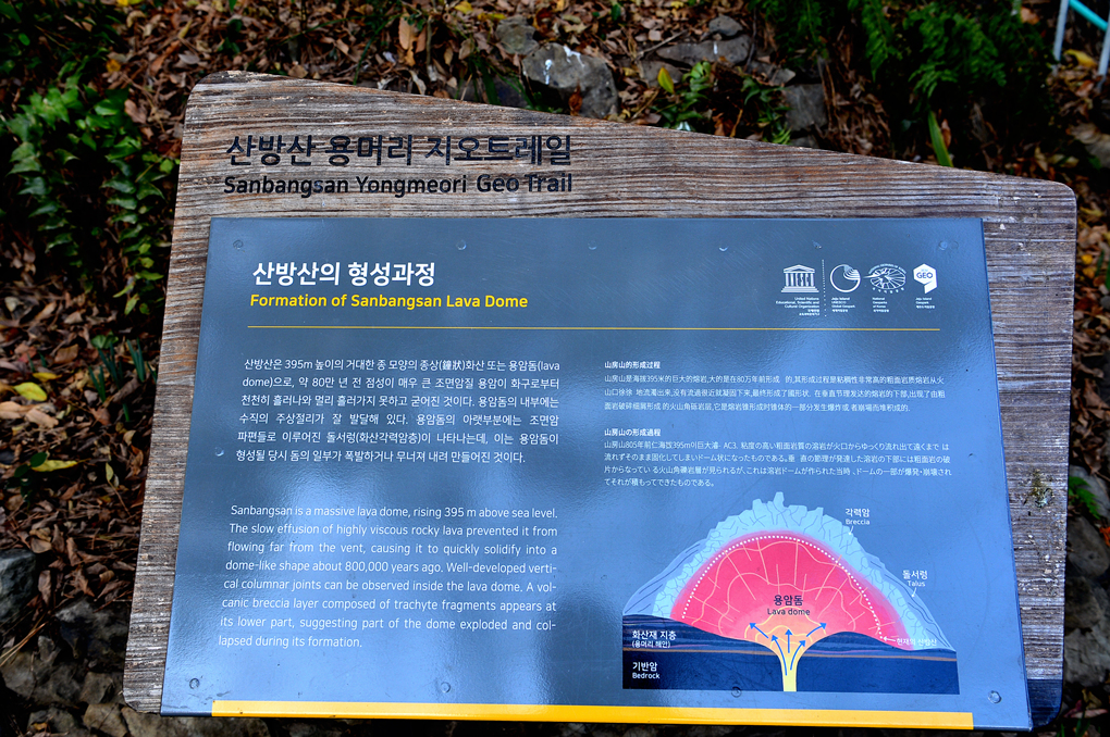 이곳 산방산의 형성과정을 비교적 상세히 서술해 놓은 안내판이다.