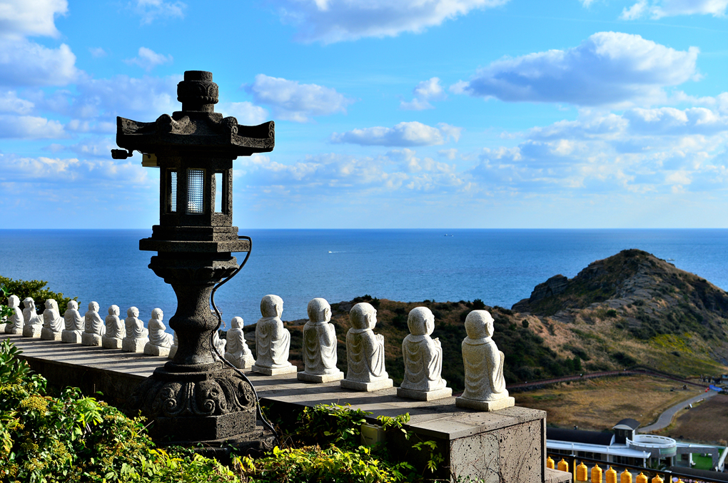 보문사 앞마당에서 내려다 보이는 용머리 해안과 바다 풍경이다.