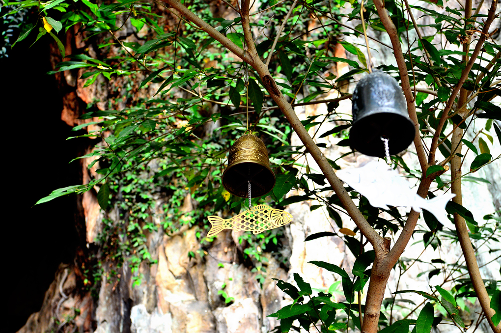 처마 대신 나뭇가지에 매달려 있는 풍경 모습이다.