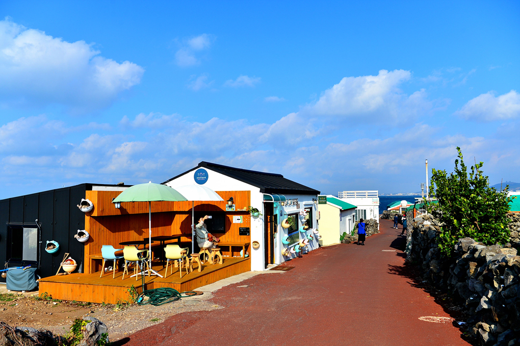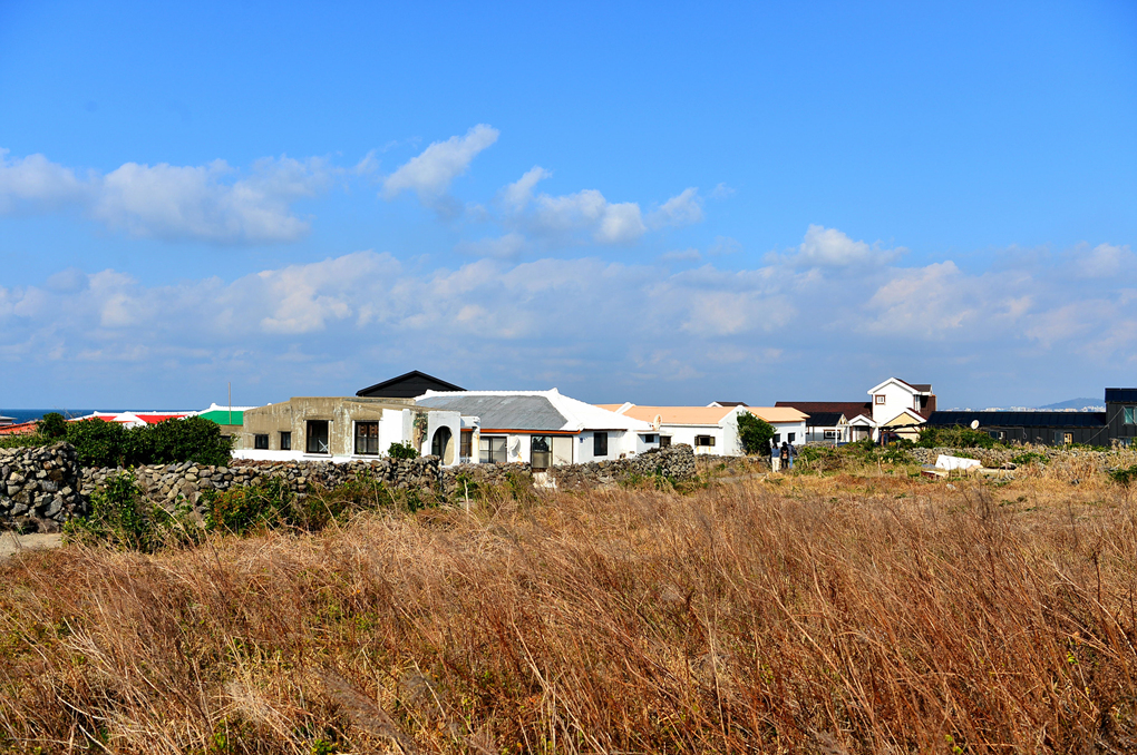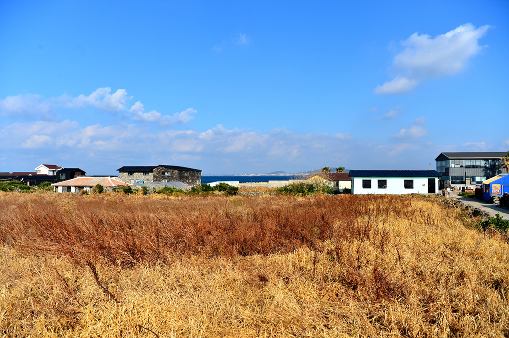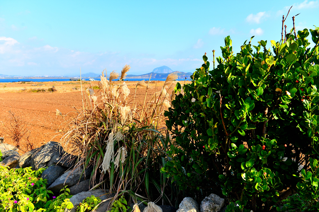 뜰 너머로는 멀리 바다 건너 제주 본섬의 모습도 바라다 보인다.