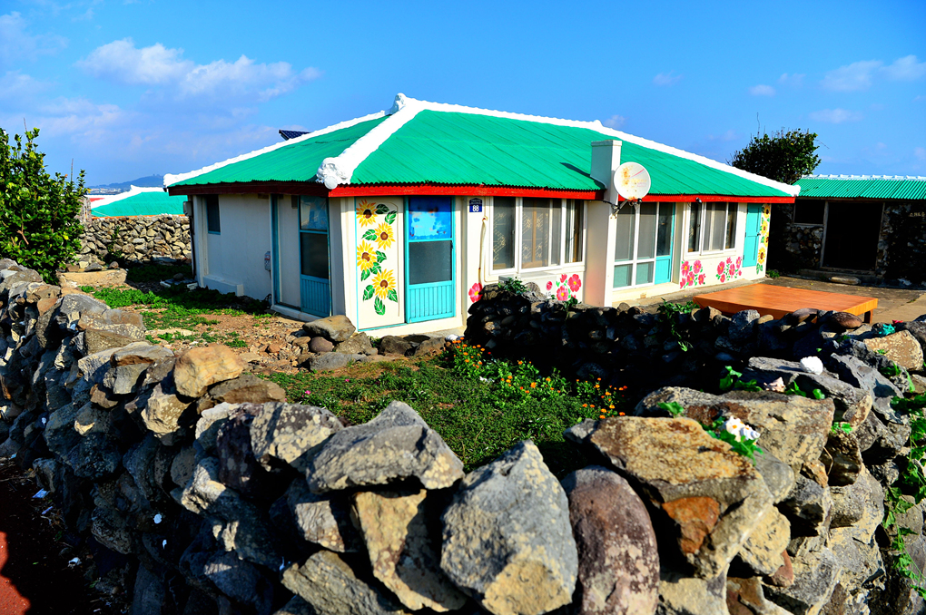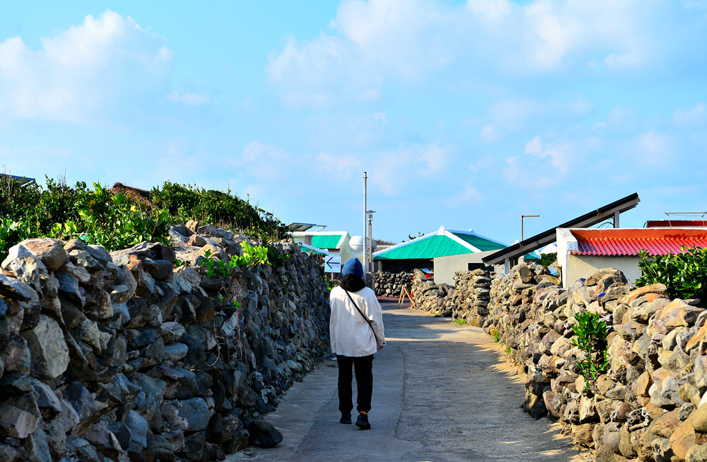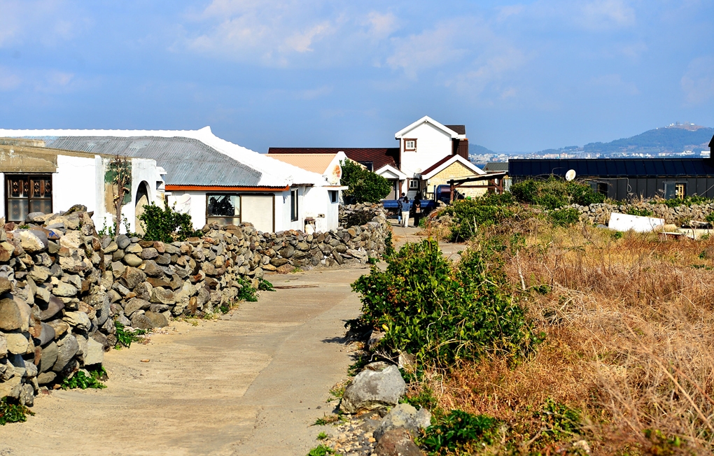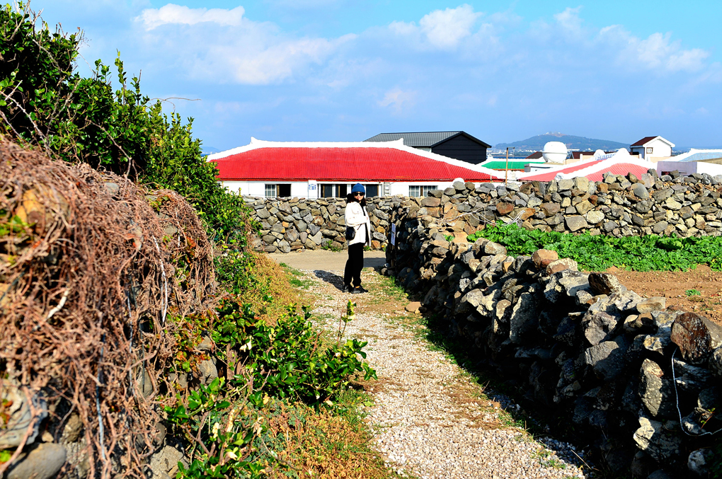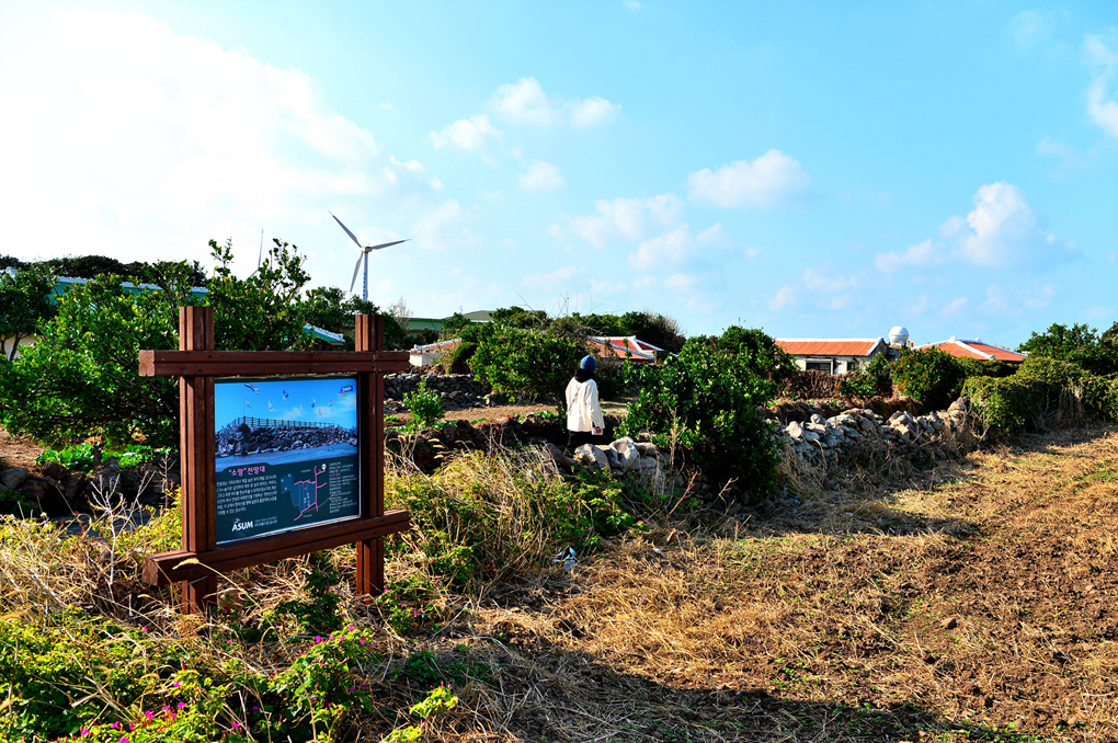 커다란 돌방아와 돌담들이 제주 고유의 풍경을 대변해 주는 듯하다.