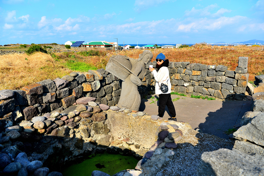 물허벅을 등에 진 여인상이 세워져 있다.