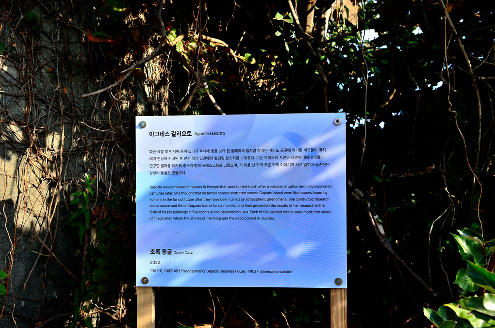 가파도의 자연과 생명에 대해 6개월간 연구한 결과를 폐가의 방들에 프레스코화로 그렸다는 작가가 이 폐가에