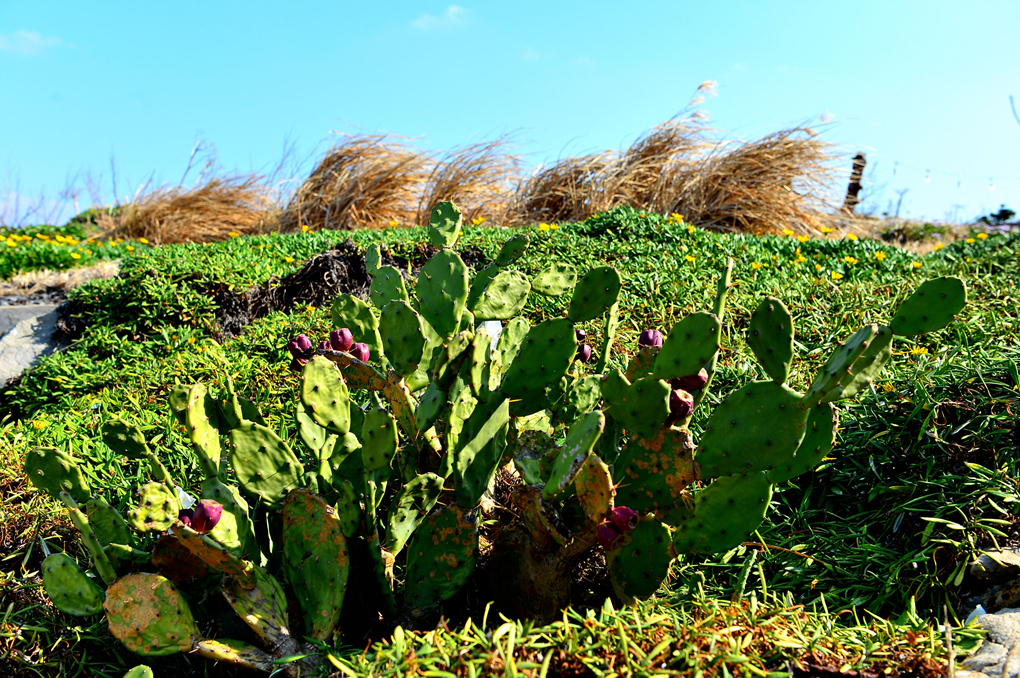 가파도 해안의 풍경인데, 이곳에도 많은 선인장이 자라고 있다.