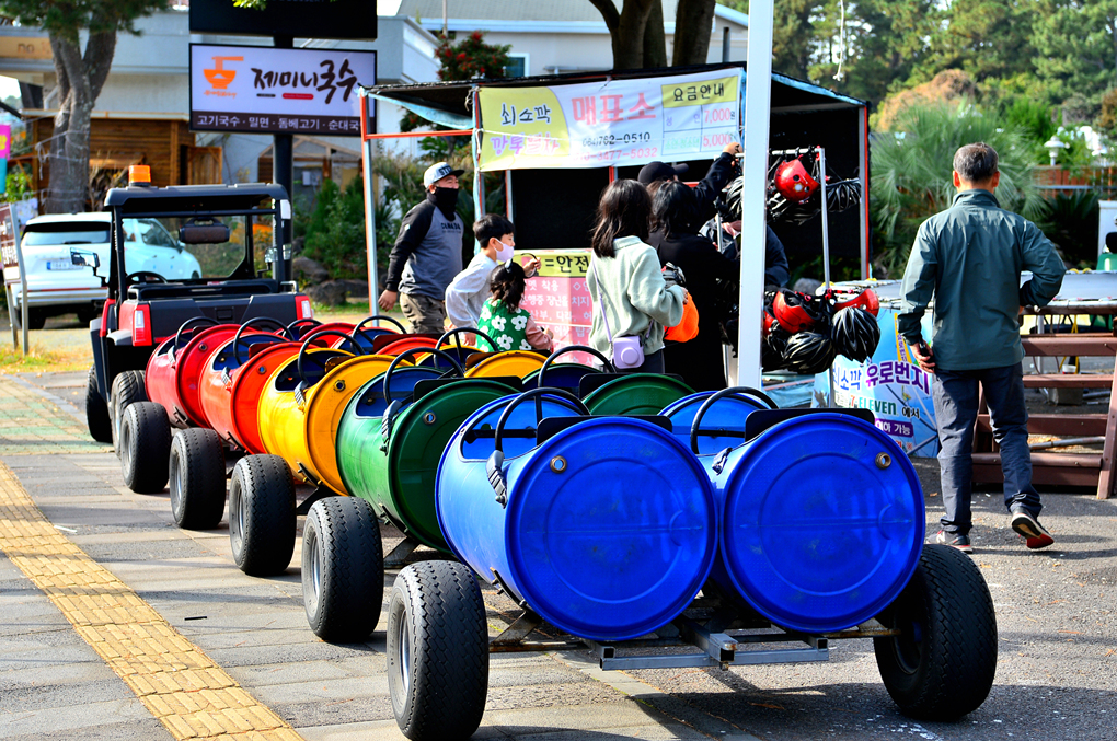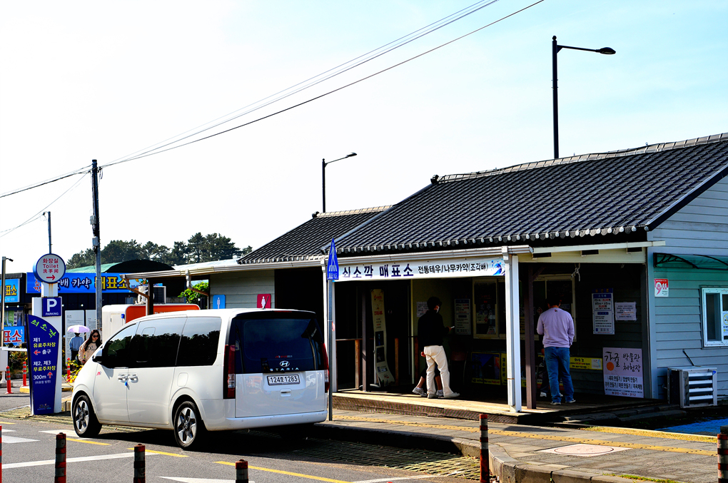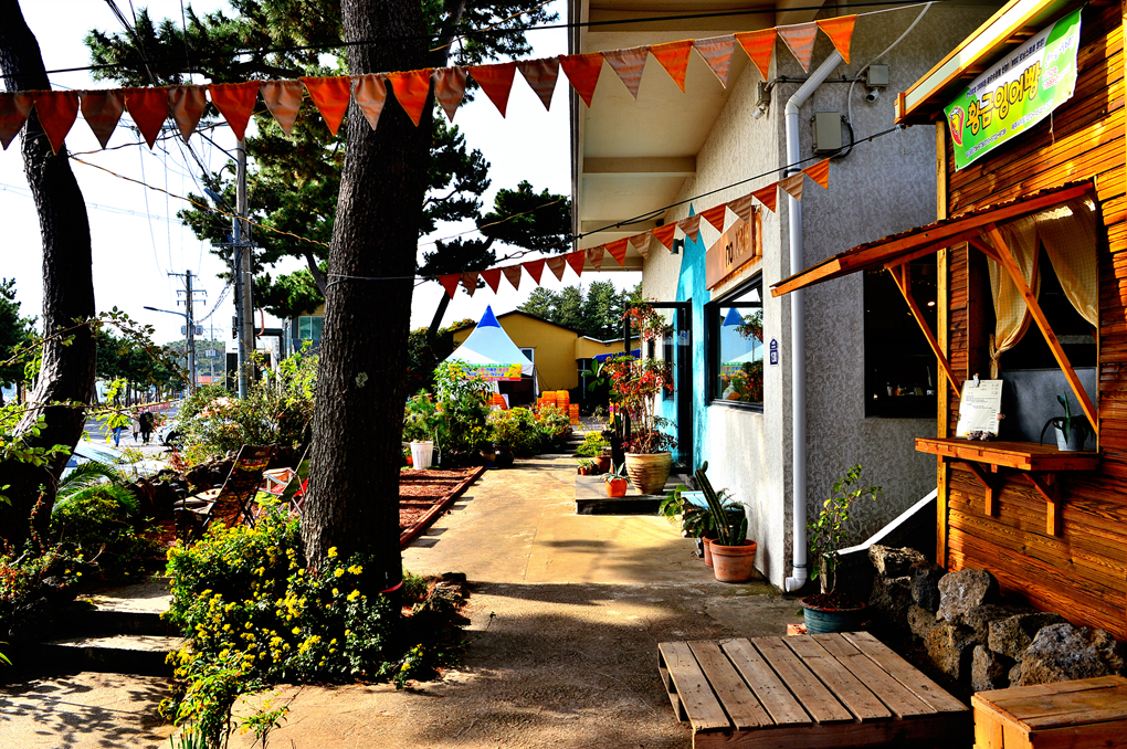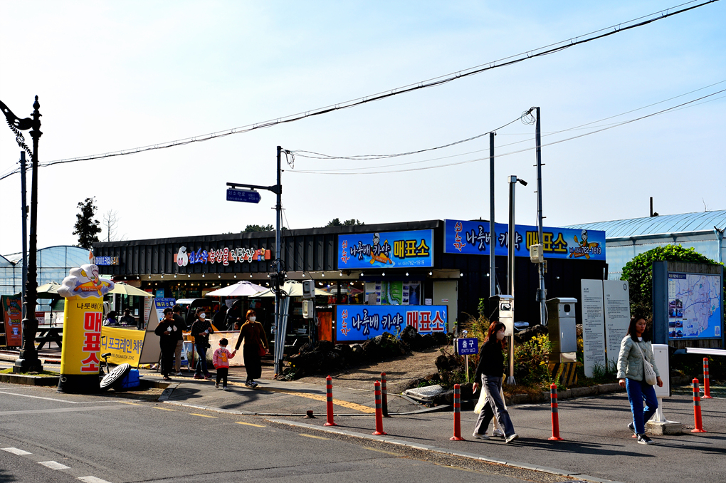 도로변의 상점 가운데서 제주의 전통 테우와 나무 카약을 타볼 수 있는 매표소도 눈에 띈다.
