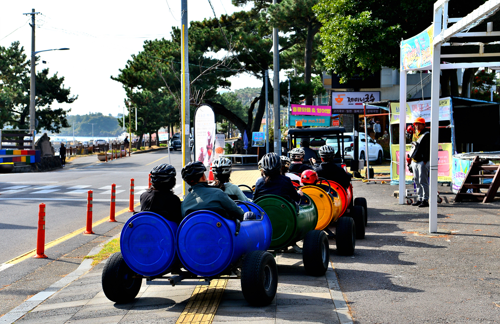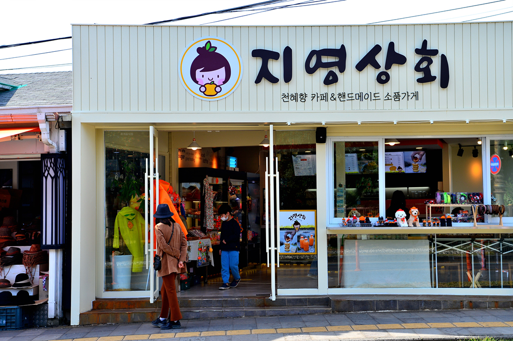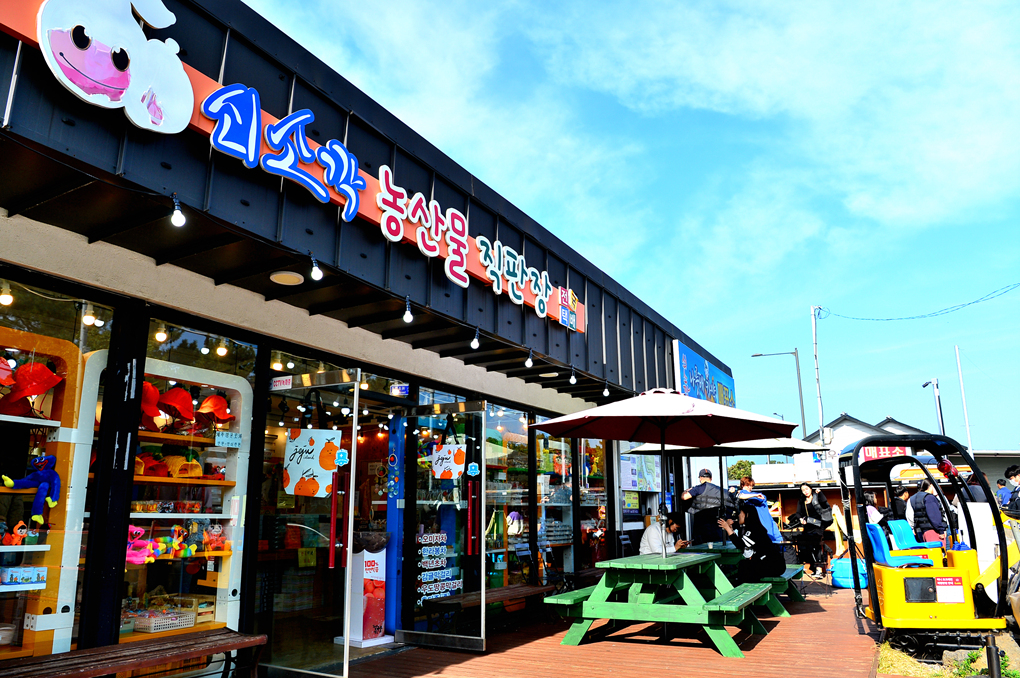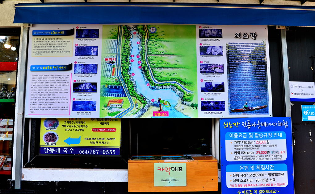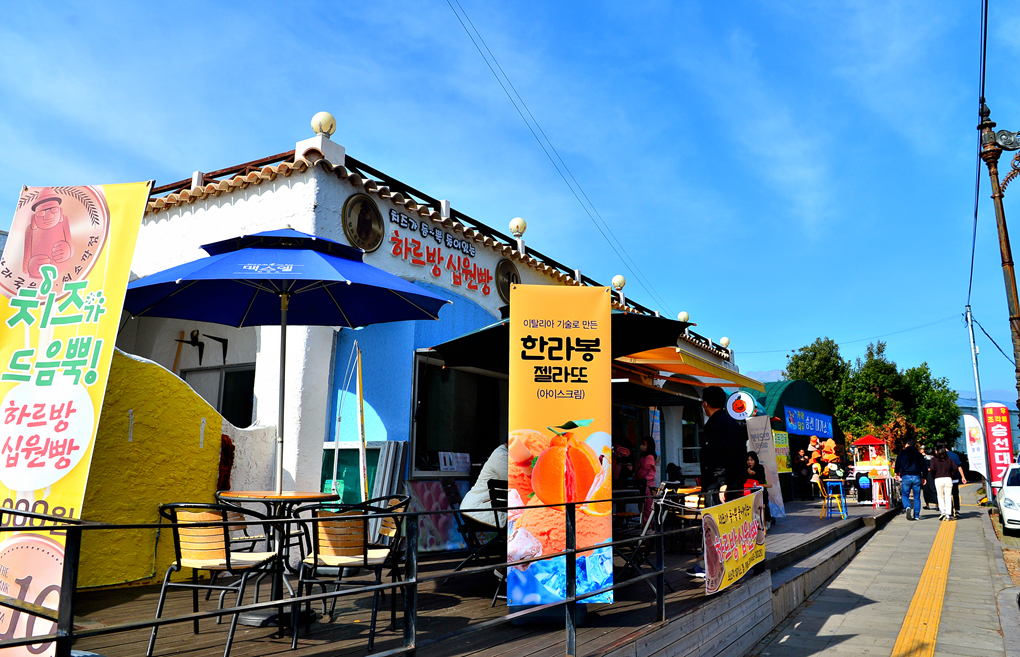 도로변의 상점 가운데서 제주의 전통 테우와 나무 카약을 타볼 수 있는 매표소도 눈에 띈다.