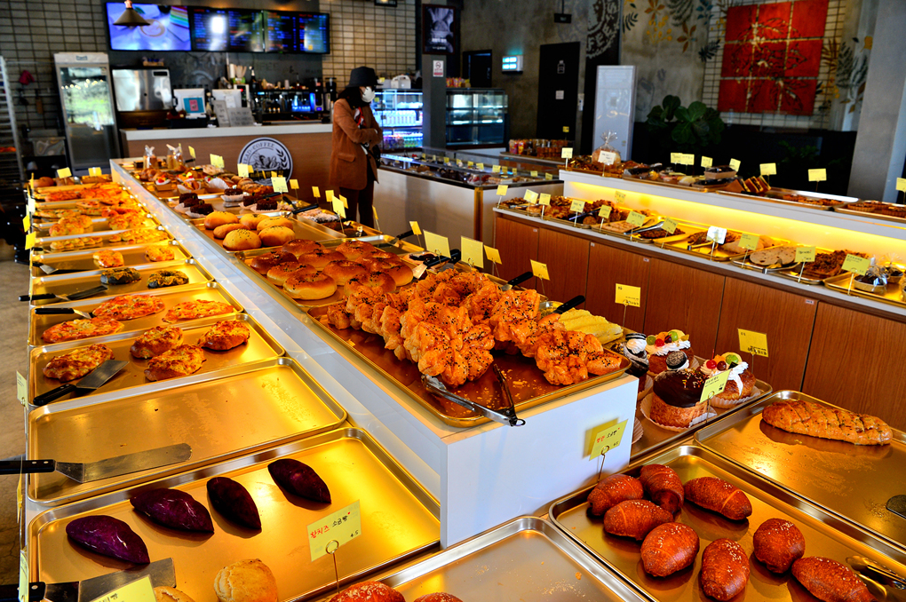 다양하게 만들어진 빵들이 매대를 가득 메우고 있다.